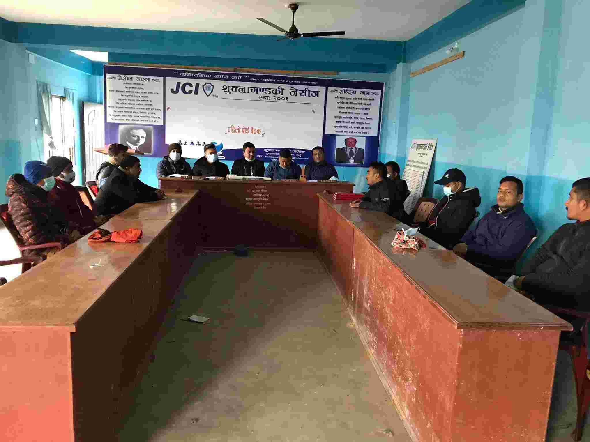 शुक्ला गण्डकी जेसिज २०२२ को प्रथम बोर्ड बैठक मिति २०७८/१०/०८ गते शुक्ला गण्डकी जेसिज को सचिवालय मा अध्यक्ष जेसी शिब बाहादुर बि क ज्युको अध्यक्षतामा सम्पन्न भएको छ उक्त बैठक मा सस्था को २०२२ का बोर्ड का पदाधिकारी तथा पुर्ब अध्यक्ष ज्यु हरुको उपस्थितिमा वर्ष २०२१ लाई बधाई तथा २०२२ को प्लान अफ एक्सन पारित लगायत बिभिन्न बिसयमा छलफल गरि सर्बसहमत निरर्ण गरियको थियो