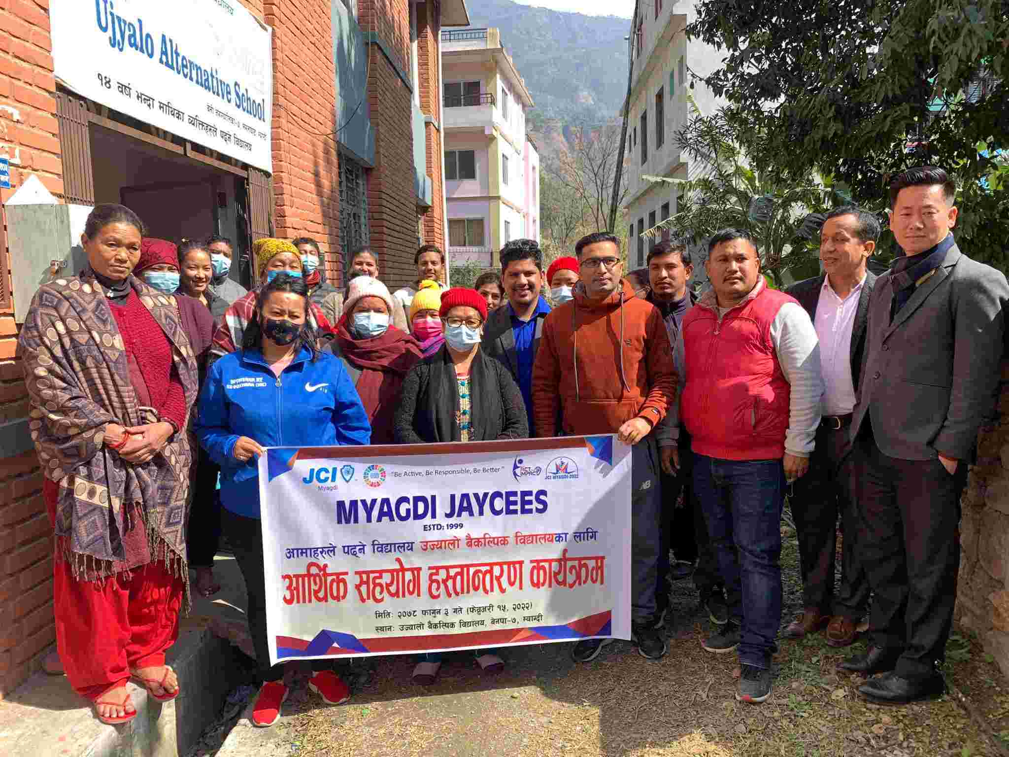 विद्यालय जाने उमेरमा अध्ययन गर्ने चाहना हुँदा हुँदै पनि विविध कारणले विद्यालय गई औपचारिक शिक्षा हासिल गर्न नपाउनु भएका महिला दिदी बहिनी, आमाहरुले उज्यालो बैकल्पिक विद्यालय बेनीमा म्याग्दी जेसीजले आर्थिक सहयोग गरेको छ । म्याग्दी जेसीज २०२२ का शाखा अध्यक्ष जेसी सन्दिप खत्रीको अध्यक्षतामा भएको कार्यक्रमबाट म्याग्दी जेसीजले रु १,००,०००।– रुपैयाँ आर्थिक सहयोग गरेको हो ।विद्यालयका का.वा. अध्यक्ष राजेश शाक्यलाई उक्त रकम हस्तान्तरण गरिएको थियो । हाल कक्षा १० सम्म अध्ययन हुने उक्त विद्यालयबाट २०७७ को एसईईमा ७ जना आमाहरुले एसईई उत्तिर्ण समेत गरिसक्नु भएको छ । हाल उक्त विद्यालयमा आर्थिक संकट आई सञ्चालनमा कठिनाई भएपछि आर्थिक सहयोग गरिएको हो । कार्यक्रममा म्याग्दी जेसीजका संस्थापक अध्यक्ष सिनेटर रमेशकुमार श्रेष्ठ, नेपाल जेसीजका पूर्व राष्ट्रिय अध्यक्ष सिनेटर धनञ्जकुमार श्रेष्ठ, पूर्व अध्यक्षहरु, सञ्चालक समितिका सदस्यहरुको सहभागीता रहेको थियो । आर्थिक सहयोग प्रदान गरेकोमा विद्यालय परिवारले म्याग्दी जेसीजलाई धन्यवाद ज्ञापन गरेको थियो ।