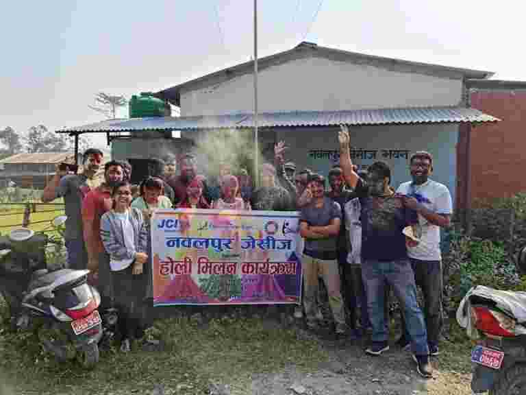 नवलपुर जेसीज २०२२ ले होली मनाएको छ । शुक्रबार कावासोती ३ मा रहेको जेसीजको भवनमा आपसी सद्भाव र भाइचारालाई आत्मा साथै गर्दे होली मिलन कार्यक्रमको आयोजना गरि होली पर्व मनाएको छ । जेसीज बर्ष २०२२ अध्यक्ष जेसी राधिका भुसालको अध्यक्षता एवम् संस्थापक अध्यक्ष बैकुण्ठ अर्यालकोे प्रमुख आतिथ्यतामा होली मिलन कार्यक्रम मनाएको हो । ।कार्यक्रममा बोल्दै प्रमुख अतिथी अर्यालले जेसीजले सामाजिक कार्यसँगै नेपालीहरुले धर्म संस्कृति, संरक्षण गर्ने उद्देश्यले चाडपर्वलाई मनाउँदै आइरहेको बताउनुभएको थियो ।