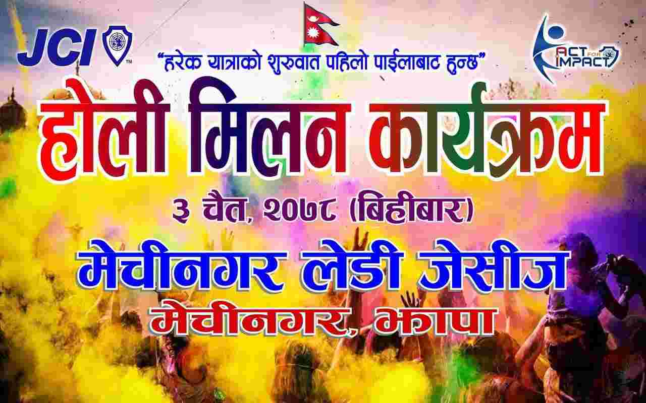 मिती -२०७८/१२/३ स्थान -सचिवालय । कार्यक्रम सम्योजक-EVP -जेसि रेजिना श्रेष्ठ अध्यक्षता-जेसि सीता पुरी प्रमुख अतिथी-ब्रम्हाकुमारी राजयोग सेवा केन्द्र धुलाबारीकि अध्यक्ष -अनिशा दिदी स्वागत -जेसि रेजिना श्रेष्ठ आस्था -जेसि सुकु तामाङ राई शुभकामना मन्तव्य -पुर्व अध्यक्ष ज्युहरु, प्रमुख अतिथी उपस्थिति -३० जना उदेश्य -सद्भाव कायम राख्दै आपसी मित्रता कायम राख्ने
