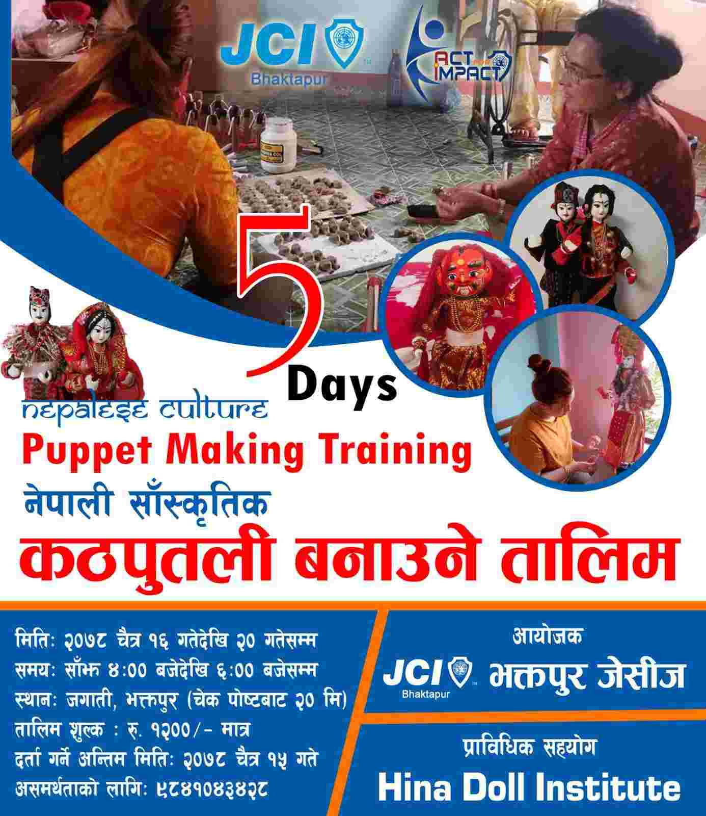 Five days Puppet Making Training has been started which is organize by Bhaktapur jaycess with technical support by Hena Doll Institute.