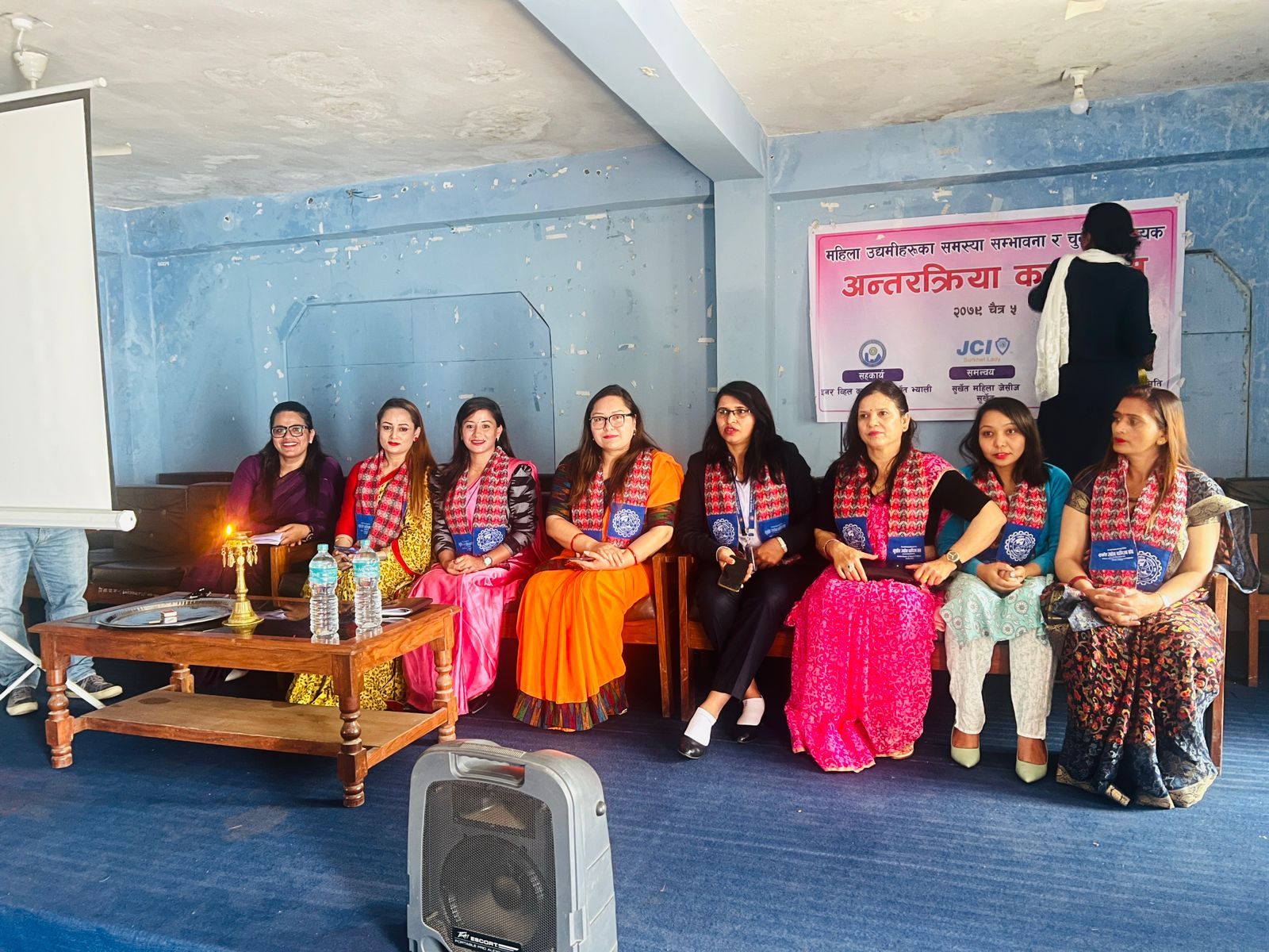 मिति २०७९/१२/०५(19th March 2023) का दिन उधाेग बाणिज्य संघ अन्तर्गत महिला उधाेग समितिकाे अायाेजना तथा सुर्खेत महिला जेसीजकाे समन्वय र इनर व्लि कल्व अफ सुर्खेतकाे सहकार्यमा महिला उधमीहरूका समस्या सम्भावना र चुनाैति बिषयक अन्तरक्रिया कार्यक्रम सम्पन्न गरियाे । कार्यक्रममा विभिन्न क्षेत्रका ३५ जना उधमी महिलाहरू लगाएत सामाजिक विकास मन्त्रालयका महिला महाशाखा प्रमुख र नगरपालिकाका उधमी अधिकृत ज्युकाे पनि उपस्थिति रहेकाे थियाे ।
