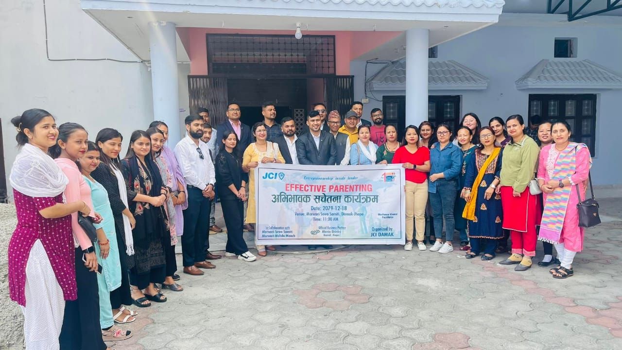 आज मिति २०७९ साल चैत्र १८ गते सनिबारको दिन दमक जेसीजको आयोजनामा दमक मारवाडी सेवा समितिको सभा हलमा दमक मारवाडी सेवा समिति , दमक मारवाडी महिला मंच , दमक स्थित बिभिन्न बिद्यालयका सिक्षक तथा अभिभावक वर्गहरु लाई “अभिभावक सचेतना कार्यक्रम “ सम्पन्न भएको छ | दमक जेसीज वर्ष २०२३का तालिम निर्देशक जेसी साजन श्रेष्ठको संयोजकतामा , वर्ष २०२३ का अध्यक्ष जेसी मुकेश अग्रवाल अध्यक्षतामा तथा दमक नगरपालिका वार्ड न ५का वार्ड अध्यक्ष श्री इन्द्र गुरुङज्युको प्रमुख अतीथ्यतामा उक्त कार्यक्रम सम्पन्न भएको हो | कार्यक्रमको अतिथि हरु मा : दमक मारवाडी सेवा समति का अध्यक्ष मनोज अग्रवाल , दमक मारवाडी महिला मंचकि निवर्तमान अध्यक्ष मधु गुप्तज्यु रहनु भएको थियो | कार्यक्रम सहजीकरण श्री माधव खानालज्यु ले गर्नु भएको थियो | कार्यक्रम असाध्यै उपलाब्धि मुलक रहेको श्रोता हरुको धारणा रहेको थियो |