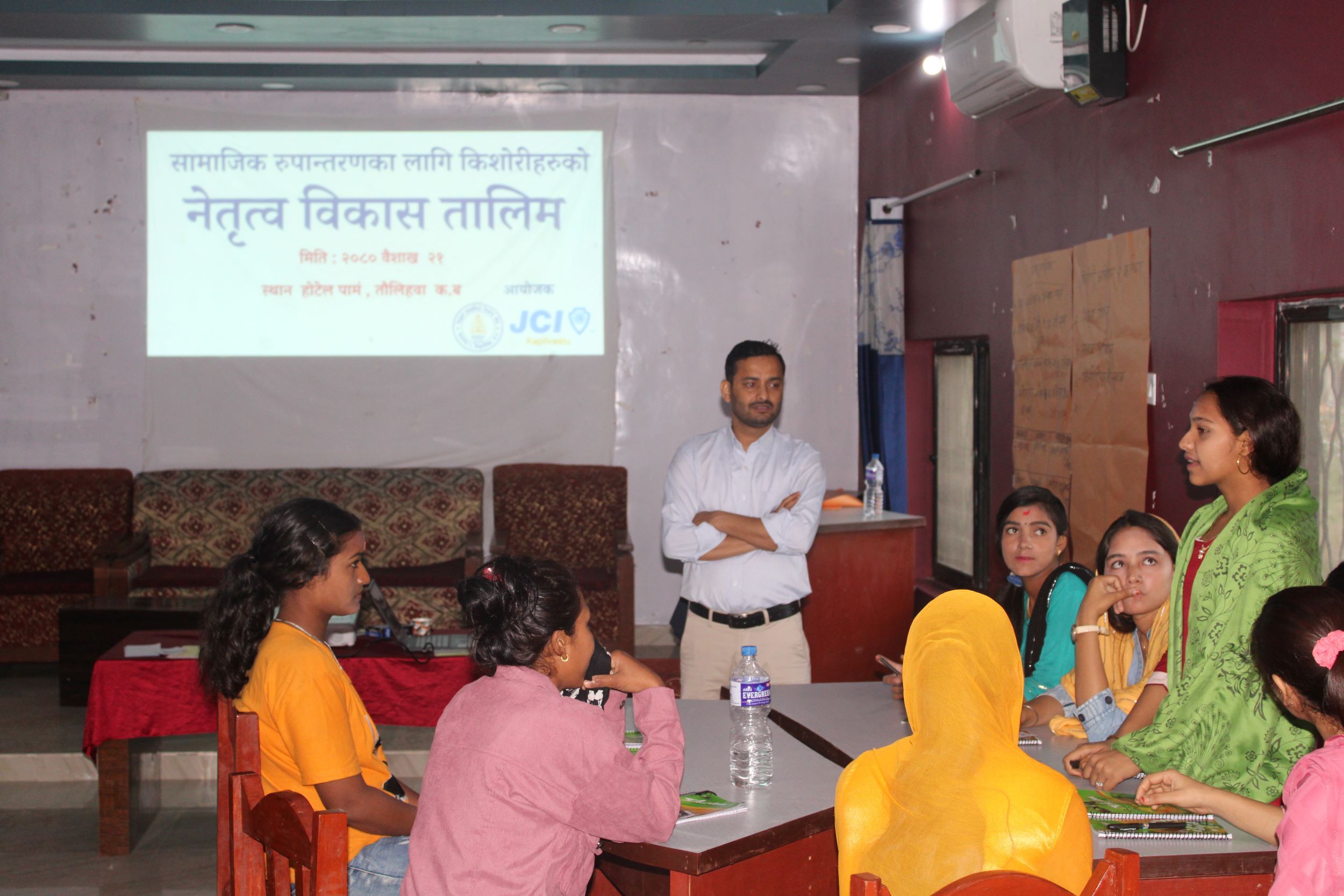 कपिलबस्तु जेसीज र SSDC कपिलबस्तुको को संयुक्त आयोजनामा सामाजिक रुपान्तरणका लागि किशोरीहरुको नेतृत्व विकास सम्बन्धी एक दिने तालिम सम्पन्न भएको छ । किशोरीहरुको नेतृत्व विकासले समाजमा ब्याप्त रहेय्का कुरुतिहरुलाई तोड्न इन्सुलेटरको काम गर्ने प्रमुख प्रशिक्षक पोम नारायण पौडेलले बताउनु भयो । SSDC का कार्यक्रम संयोजक धनेश्वोरी घर्तिले जेसीज सँगको सहकार्यमा राखिएको यस कार्यक्रमले किशोरीहरूमा समाज रुपान्तरण सम्बन्धी केही जानकारी दिन पाइएकोमा खुसी व्यक्त गर्दै आफूले सिकेका कुराहरू अन्य साथीहरूलाई पनि जानकारी गराउन आग्रह गर्नुभयो । कार्यक्रममा कपिलबस्तु जेसीजका अध्यक्ष जेसी अमृत घिमिरेले आजको प्रविधिको युगमा देश बिदेशका बिभिन्न कालखण्डमा भएका परिवर्तनका सम्भाहक किशोरीहरु रहेको र सुरक्षित नेतृत्वको अवसरको लागि सदैव तयार रहनुपर्ने बताउनु भएको थियो । करिब ३० जनाको उपस्थितिमा भएको यस तालिमको सञ्चालन महासचिव जेसी मदन पौडेलले गर्नु भएको थियो