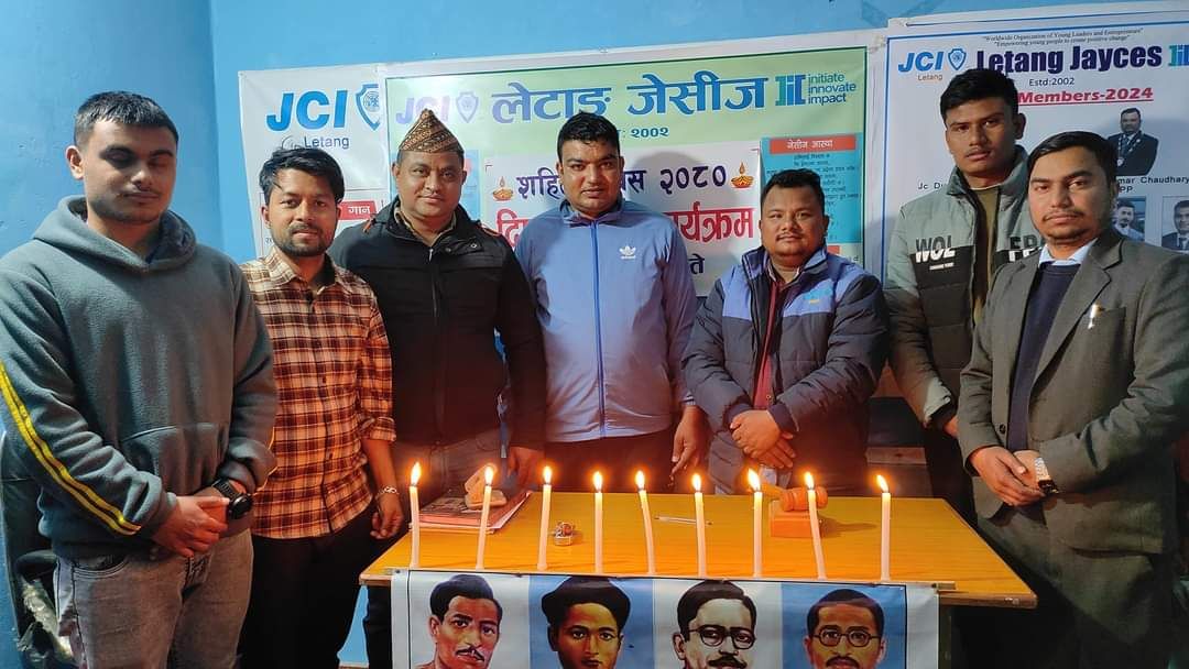 सहिद दिवसका अवसरमा लेटाङ जेसिजले सहिद स्मृतिमा श्रद्धाञ्जली साथै साहित्यक कार्यक्रम आयोजना गरेको छ । नेपालमा प्रजातन्त्र र लोकतान्त्रिक शासन व्यवस्थाको स्थापनाका लागि आफ्नो अमूल्य जीवन साहदत गरेका सम्पूर्ण सहिदहरुप्रति आज लेटाङ जेसीजका सम्पुर्ण बोर्डका पदाधिकारी साथै पुर्व अध्यक्षज्यूहरु लगायतले सहिदहरुको स्मृतिमा दीप प्रज्ज्वलन गरिएको छ ।