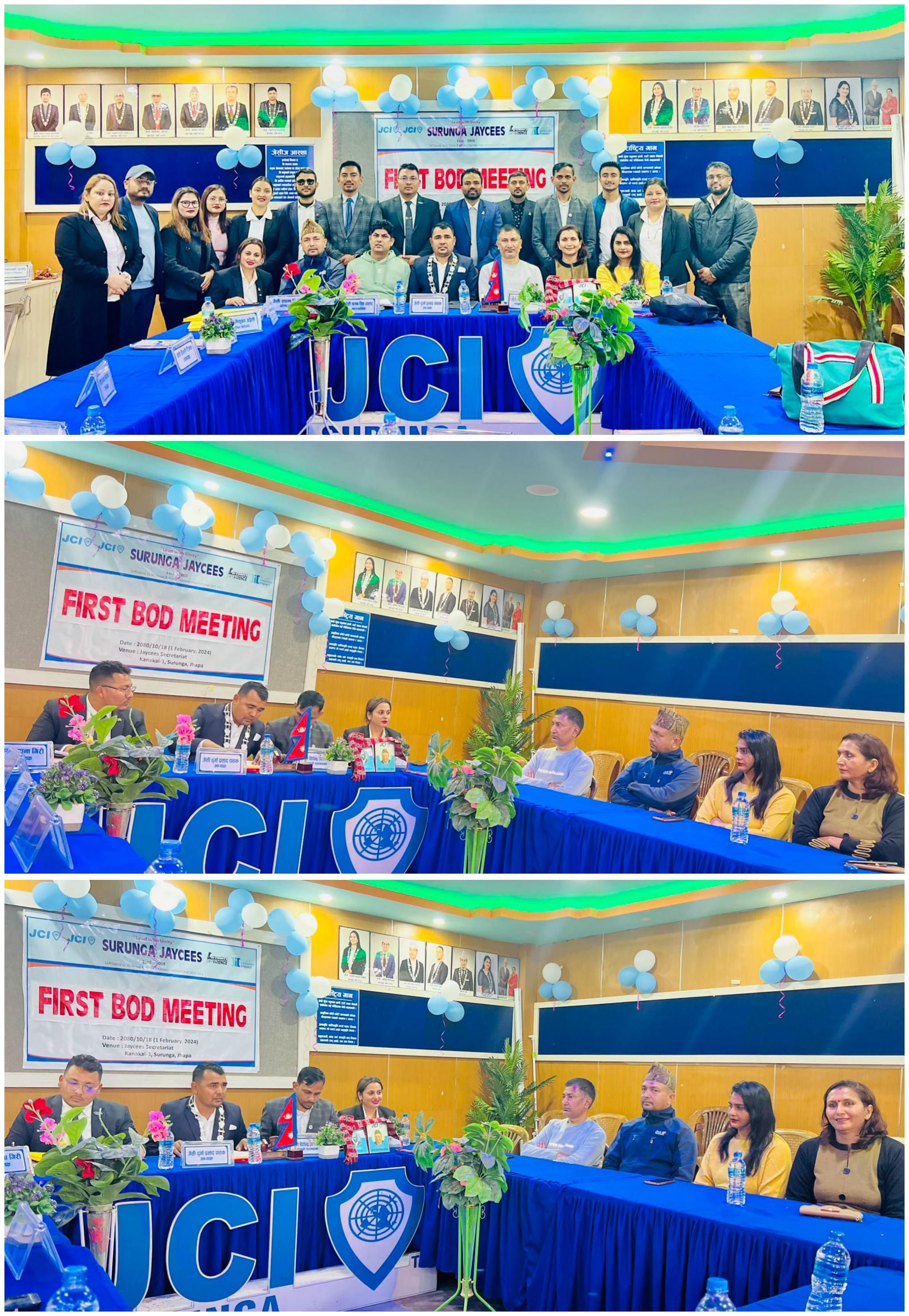 Chaired by President JC Durga Prasad Pathak, the inaugural Board of Directors' Meeting for 2024 convened on February 1, 2024, at the Jaycees Meeting Hall in Kanakai-3. Commencing at 4:50 pm, the meeting lasted for an hour, with a total of 15 Board of Directors (BOD) members in attendance.