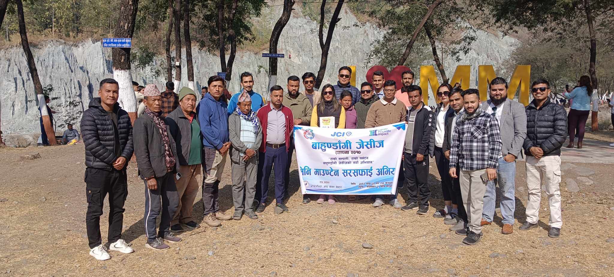 बाहुण्डाँगी । बाहुण्डाँगी जेसीजको आयोजनमा पर्यकटीय स्थल मिनि माउटेनको सरसफाइ अभियान सम्पन्न भएको छ । हाम्रो सम्पती हाम्रो पर्यटन, बाहुण्डाँगी जेसीजको नयाँ अभियान भन्ने नाराका साथ शनिवार मेचीनगरको पर्यटकीय स्थल मिनि माउनटेनको सरसफाइ सम्पन्न भएको हो । सरसफाइ अभियानमा संस्थाका पदाधिकारी तथा मिनि मााउण्टेन समितिका पदाधिकारीहरुको सहभागिता रहेको थियो । बाहुण्डाँगी जेसीज २०२४ का अध्यक्ष जेसी देबु बानियाँको सभापतित्वमा सम्पन्न कार्यक्रमको सञ्चालन महासचिव सुस्मिता खतिवडाले गर्नु भएको थियो । साथै सोही अवसरमा संस्थाको दोस्रो बोर्ड बैठक समेत सम्पन्न भएको थियो ।