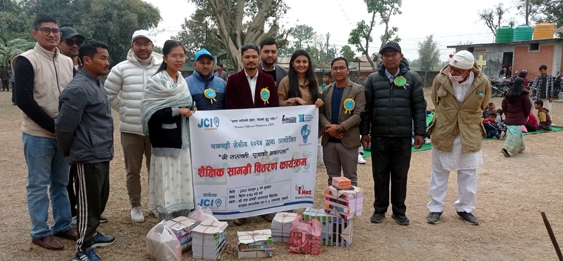 २०८० साल फाल्गुन २ गते बुधवार, चक्रघट्टी जेसीज बर्ष २०२४ को आयोजनामा सरस्वती पूजाको सु-अवसर पारेर बराहक्षेत्र नगरपालिका वडा नम्बर ५, रामझोडा स्थित श्री राम जानकी आधारभुत बिधालयमा ११३ जान बिद्यार्थी भाई बहिनिहरुलाई शैक्षिक सामग्रीहरु बितरण गरी सरस्वती पूजा मनाएको छ ।