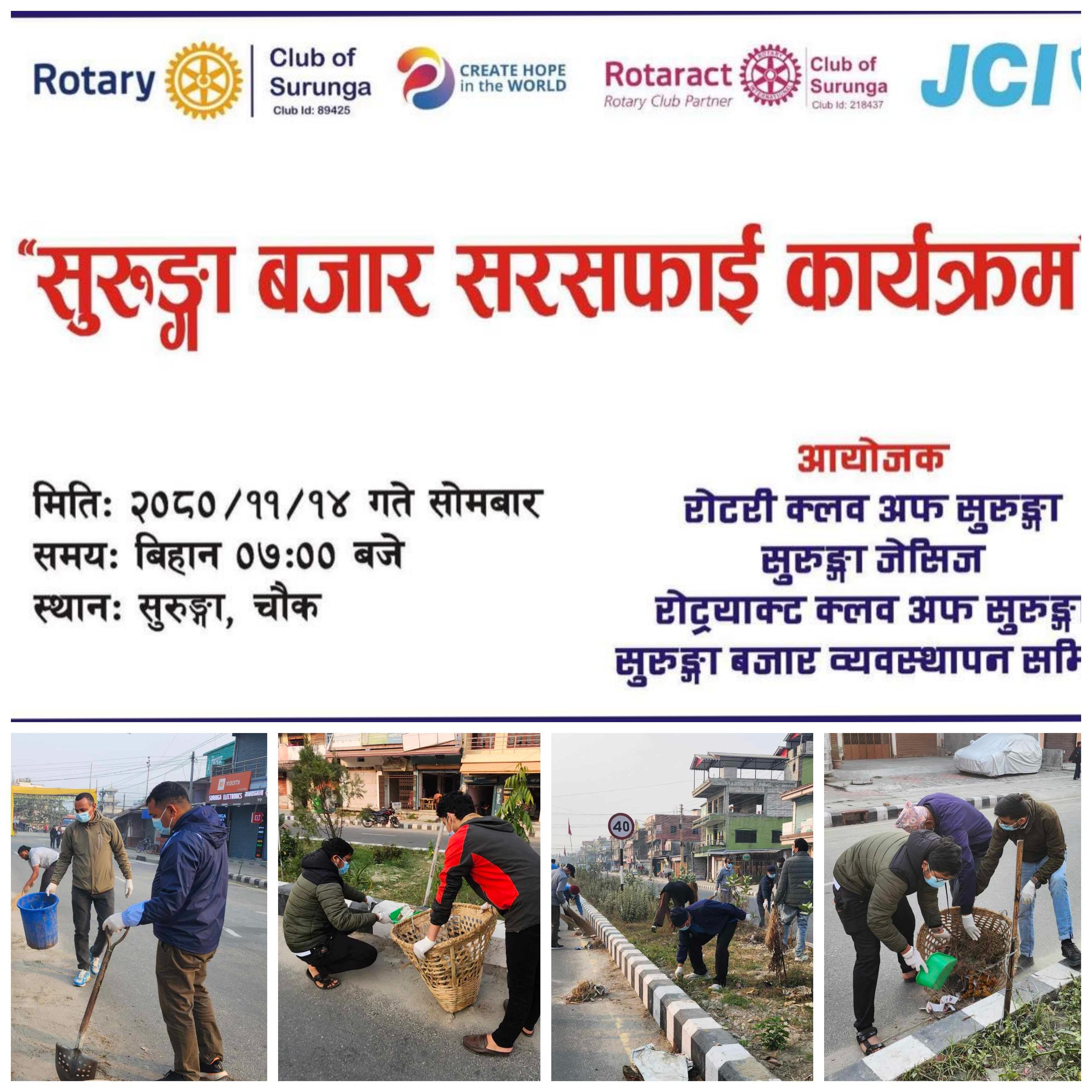 The Surunga Market Cleaning Program was organized on 26th February 2024, in collaboration with Surunga Jaycees,