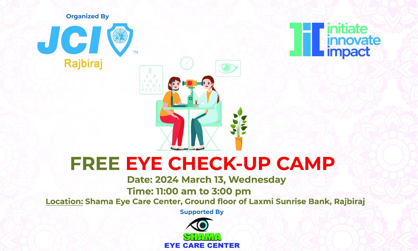 राजविराज जेसीजले बुधबार निःशुल्क आँखा जाँच शिविर सम्पन्न गरेको छ । राजविराज जेसीजको आयोजना र शमा आई केयर सेन्टरको प्राविधिक सहयोगमा सम्पन्न शिविरमा विभिन्न विद्यालयका विद्यार्थी र शिक्षकहरुको आँखा जाच गरिएको थियो ।