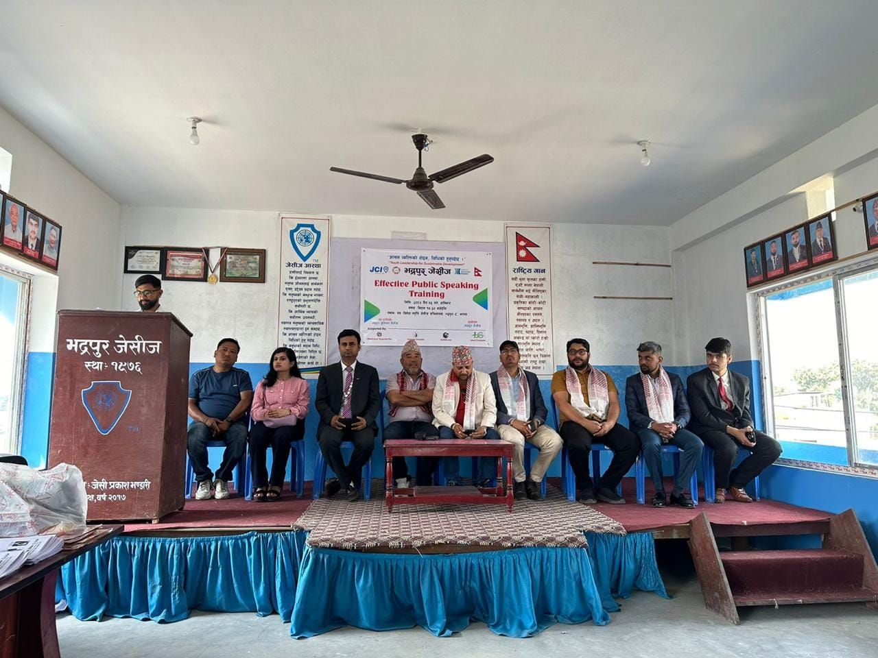 भद्रपुर जेसीजको आयोजनामा तथा भद्रपुर जुनियर जेसीजको सह-आयोजनामा "Effective Public Speaking Training" मा ३२ जनाको सहभागीता रहेको थियो। उक्त कार्यक्रमको अध्यक्षता भद्रपुर जेसीजका अध्यक्ष जेसी दिपक पाण्डेले गर्नुभएको थियो, प्रमुख अतिथि भद्रपुर नगरपालिकाका वडा न. ८ का वडा अध्यक्ष श्री गौरव सुब्बा(मनोज)ज्यु, भद्रपुर जेसीजका पुर्ब अध्यक्ष ज्युहरु, अतिथि नेपाल जेसीजबाट प्रशिक्षक जेसी प्रवेश दुलाल, भद्रपुर जेसीजका बोर्डका पदाधिकारी ज्युहरु, मातृत्व प्रदान गरेको शाखा कचनकवल जेसीजका अध्यक्ष जेसी बेनुपराज प्रसाईं ज्युको समेतको उपस्थिति रहेको थियो। कार्यक्रम पूर्ब अध्यक्ष ज्युहरुको प्रतिनिधित्व गर्दै भनपा वडा न.७ का वडाध्यक्ष एवं भद्रपुर जेसीजका पुर्व अध्यक्ष जेसी अभिषेक ढुंगाना ज्युले शुभकामना मन्तव्य राख्नुभएको थियो। कार्यक्रममा स्वागत मन्तव्य भद्रपुर जेसीजका उपाध्यक्ष एवं यस कार्यक्रम संयोजक जेसी सुरज श्रेष्ठज्युले गर्नुभएको थियो, जेसीज आस्था बाचन कानुनी सल्लाहकार जेसी सुरेन्द्र खडका(हिमाल) ज्युले राख्नु भएको थियो भने कार्यक्रम संचालन सचिव जेसी शेखर बुढाथोकी ज्युले संचालन गर्नुभएको थियो।