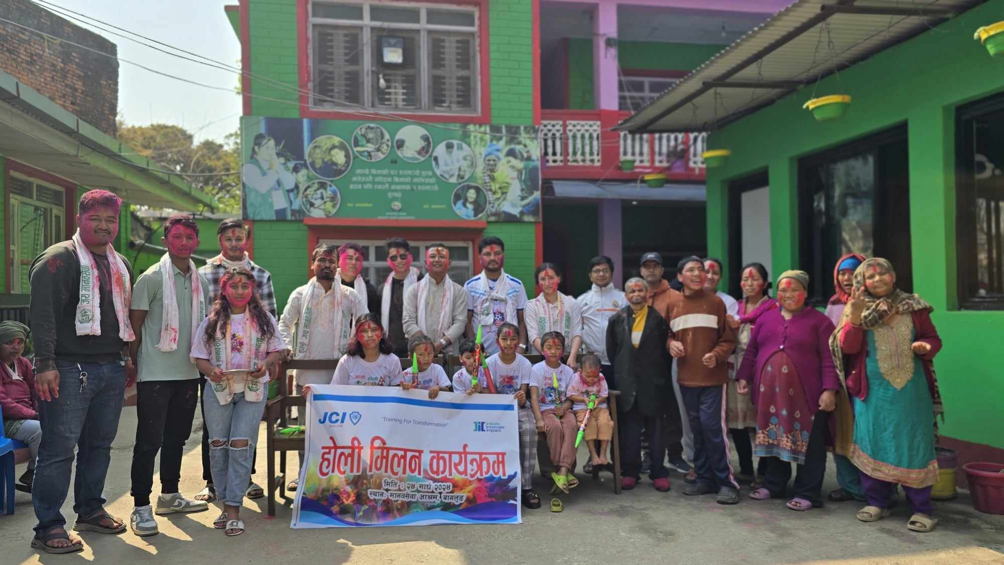 Holi Program at manewa sewa ashram on 24 march 2024 which was organized by JCI Baglung where all menbers & Past President and the all members who are served by ashram played holi among each other at Baglung Bazar .