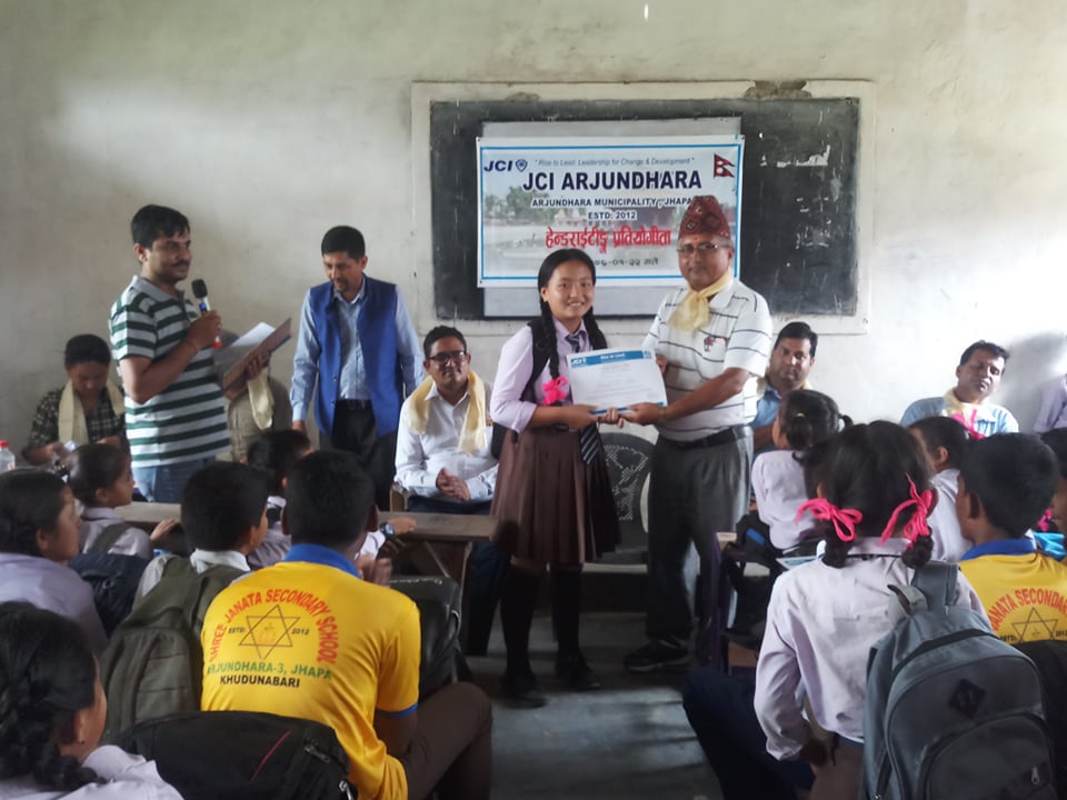 प्रतियोगितामा प्रथम ,द्वितीय र तृतीय हुने विद्यार्थीहरुलाई प्रमुख अतिथि तथा वडा नं.३ का अध्यक्ष जीवनकुमार भण्डारी , निवर्तमान अध्यक्ष अजय देव लगायतले प्रमाणपत्र र पुरस्कार प्रदान गरेका थिए ।