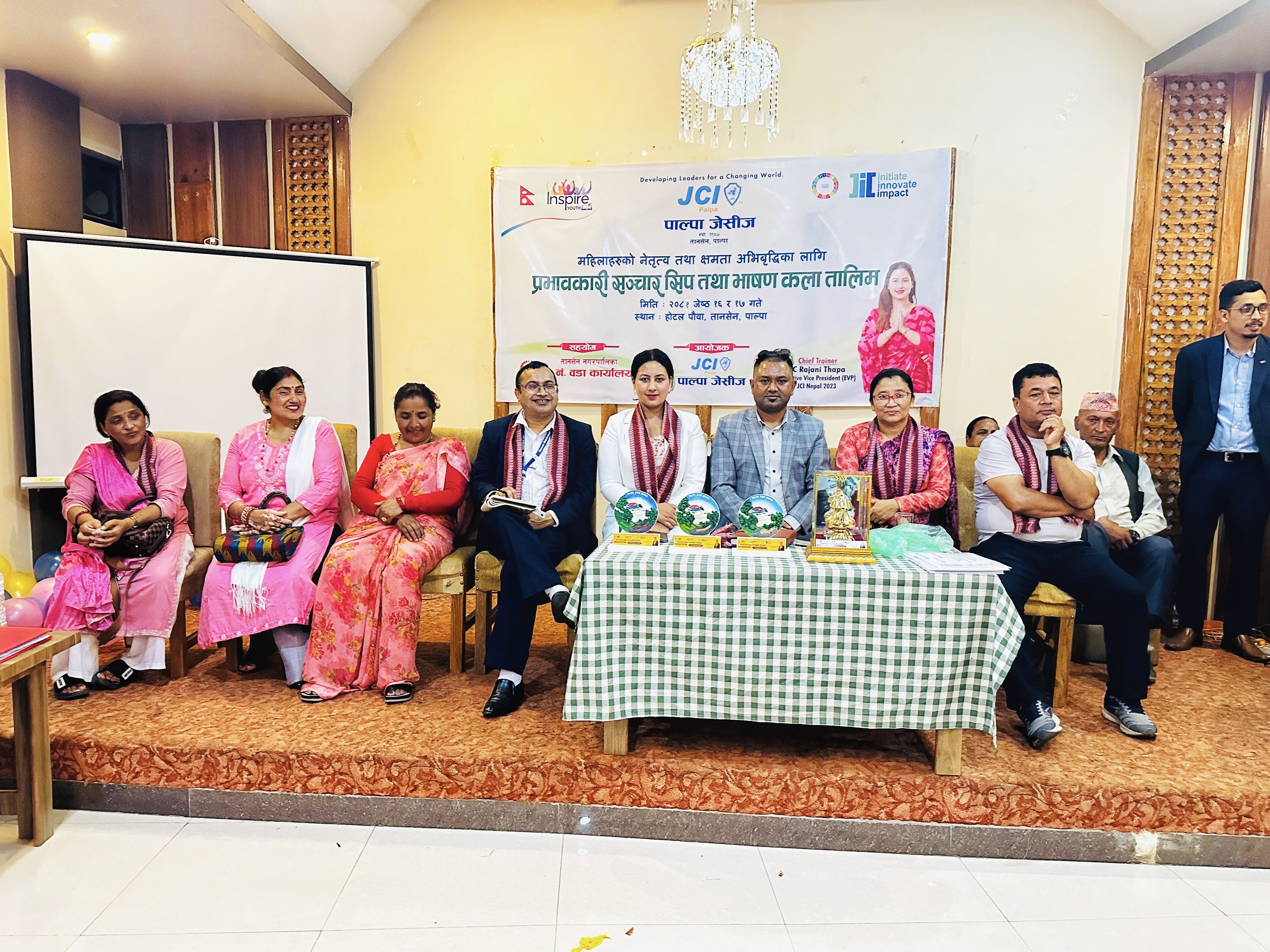 तानसेन । पाल्पा जेसीजले आयोजना गरेको दुई दिने प्रभावकारी सञ्चार, सीप तथा भाषण कला तालिम सम्पन्न भएको छ । तानसेन नगरपालिका ५ नं. वडा कार्यालयको आर्थिक सहयोगमा बुधबारदेखि सञ्चालन भएको तालिममा ४० बढी महिलाहरुको सहभागिता रहेको थियो ।