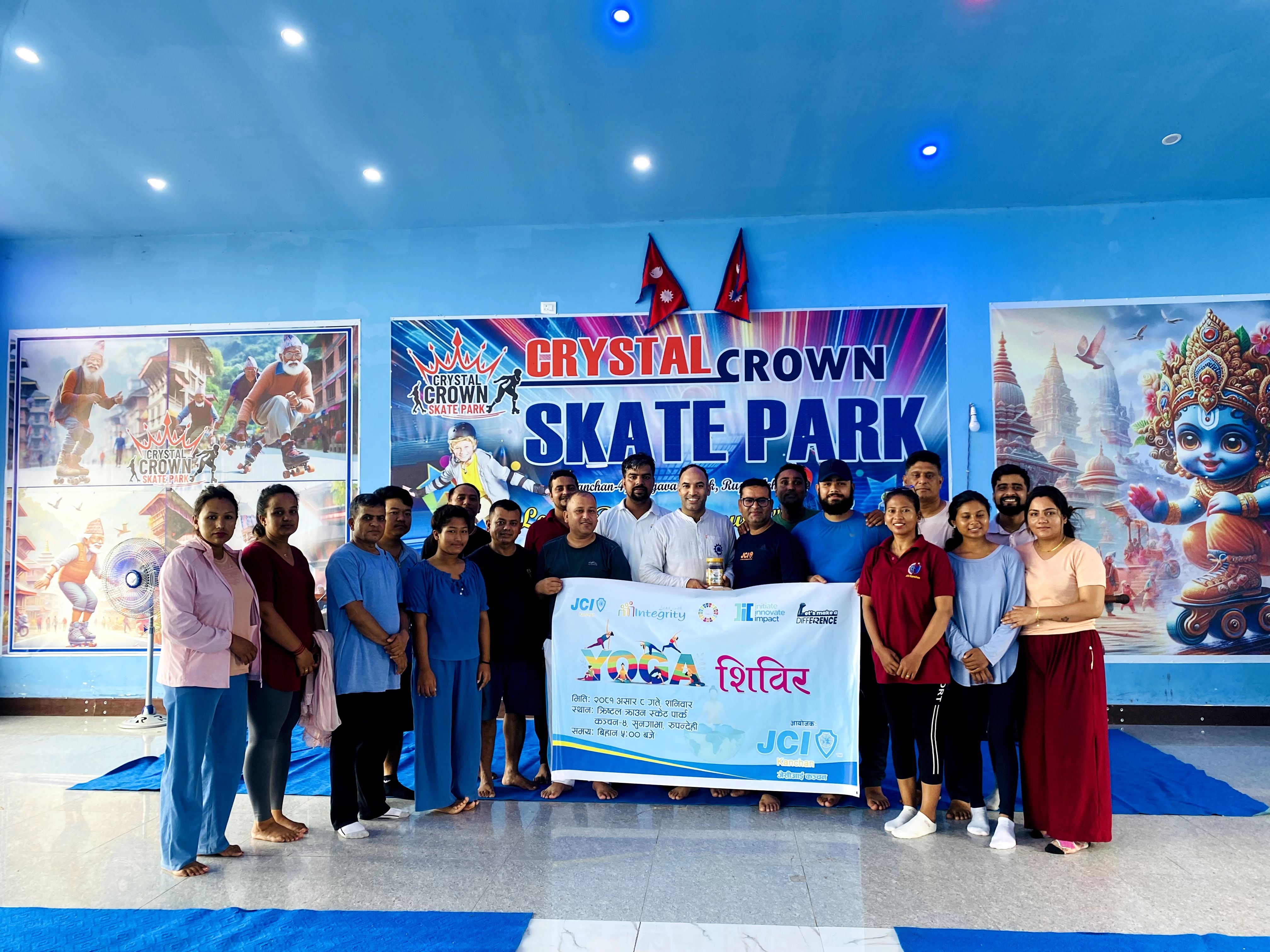 क्रिष्टल क्राउन स्केट पार्कमा भएको योगाभ्यास कार्यक्रमको सञ्चालन जेसीआई कञ्चन वर्ष २०२४ का महासचिव जेसी प्रकाश उपाध्याय पौडेलले गर्नु भएको थियो।
