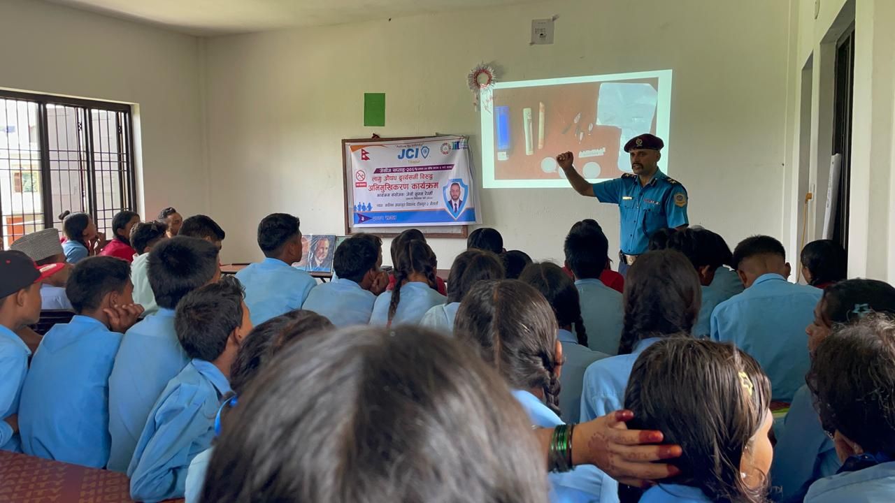 टीकापुरमा जारी जेसीज सप्ताह अन्तर्गत आज लागु औषध दुर्व्यसनी विरुद्ध अभिमुखीकरण कार्यक्रम सम्पन्न भएको छ । टिकापुर जेसीजको आयोजनामा टीकापुर वार्ड नं.२ को कालिका आधारभुत बिद्यालयका बिद्यार्थीहरुमा लागु औषध दुर्व्यसनी विरुद्ध अभिमुख गराउदै कार्यक्रम सम्पन्न गरेको हो ।