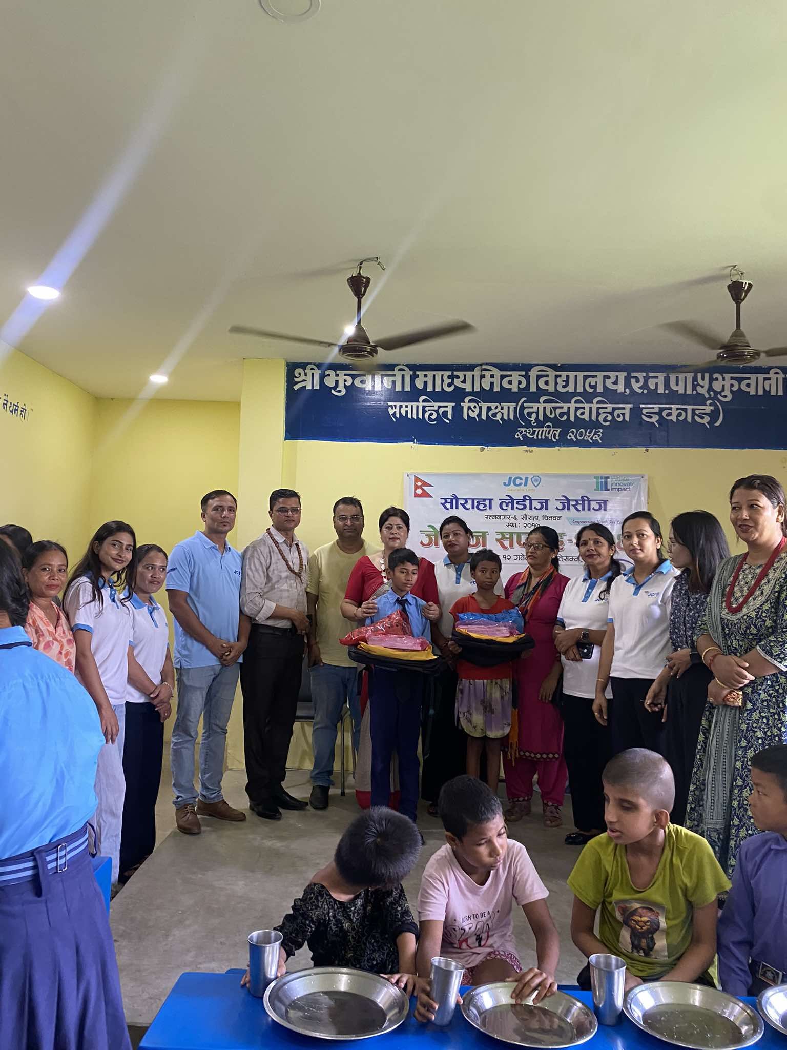 मिती २०८१ /०५ १२ गते बुधबार का दिन र.न.पा. ५,मा अवस्थित झुवानी माध्यमिक विद्यालयमा यस सौराहा लेडी जेसिज को बर्ष २०२४ को शाखा अध्यक्ष जेसी सुनिता पौडेल घिमिरे ज्यु को अध्यक्षतामा र रत्ननगर नगरपालिका वडा नं ५ का वडा अध्यक्ष बालकृष्ण चापागाई ज्यु को प्रमुख आतिथ्यमा , बर्ष २०२४ को राष्ट्रिय उपाध्यक्ष जेसी स्वप्ना पौडेल भन्डारी ज्यु, संस्थापक अध्यक्ष ज्यु जेसी सुजता बिष्ट ज्यु,निवर्तमान अध्यक्ष ज्यु, पुर्व अध्यक्ष ज्युहरु र समाहित शिक्षाका ईन्चार्ज सभ्यता खनाल ज्यु को आतिथ्यमा आयोजित फरक छमता भएका बालबालिकाहरूलाई खाना खुवाउने कार्यक्रम सभ्य तथा भव्य रुपमा सु सम्पन्न गरी यस सौराहा लेडी जेसिज को जेसिज सप्ताह समुदघाटन गरियो।