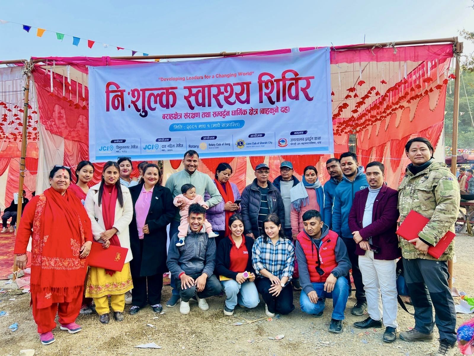 दाङ महिला जेसीज,त्रिभुवननगर जेसीज रोटरी क्लव अफ दाङ, लायन्स क्लव अफ घोराही सिटीको संयुक्त आयोजना तथा जनस्वास्थ्य प्रवद्र्धन शाखा घोराही उप–महानगरपालिकाको समन्वयमा बाह्रकुने दहमा निःशुल्क स्वास्थ्य शिविर सम्पन्न भएको छ । शिविरमा ३०० बढी सेवाग्राहीहरुले निःशुल्क औषधि तथा स्वास्थ्य परामर्श प्राप्त गरेका थिए ।