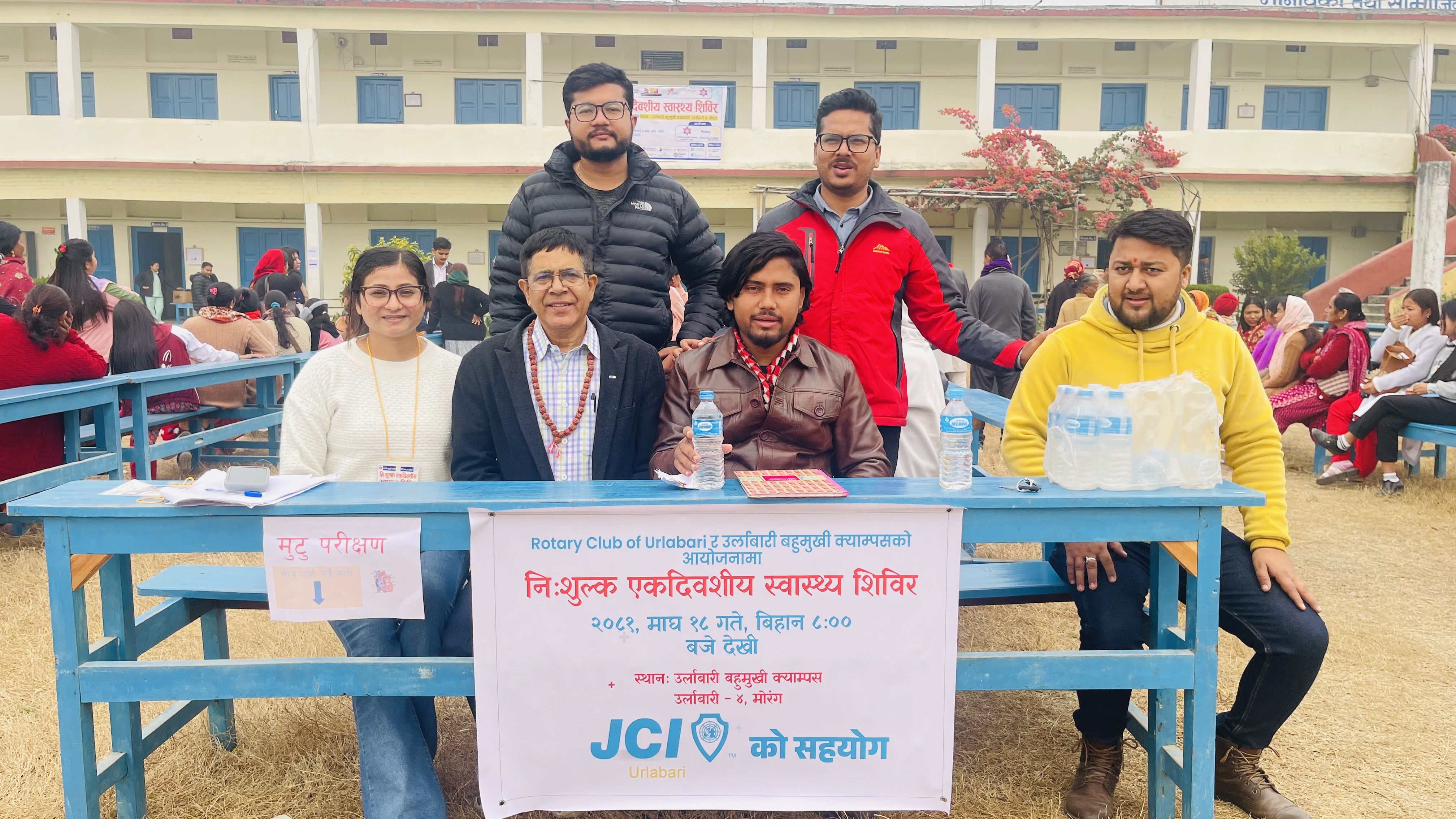 उर्लाबारी जेसीजको सहयोगमा उर्लाबारी बहुमुखि क्याम्पसमा एक दिवसीय निःशुल्क स्वास्थ्य शिविर कार्यक्रम सम्पन्न गरीएको छ। पुर्वान्चल क्यान्सर हस्पिटलको सहयोगमा भएको उक्त कार्यक्रममा पाठेघरको मुखको क्यान्सर, मुटु र नाक कान घांटी को निशुल्क उपचारसाथै बिज्ञहरुको परामर्श दिईएको थियो। ६०० जना सर्वसाधरण लाभान्वित भएको उक्त शिविरमा जेसीज उर्लाबारीको भुमिकाले चौतर्फी चर्चा पाएको छ।
