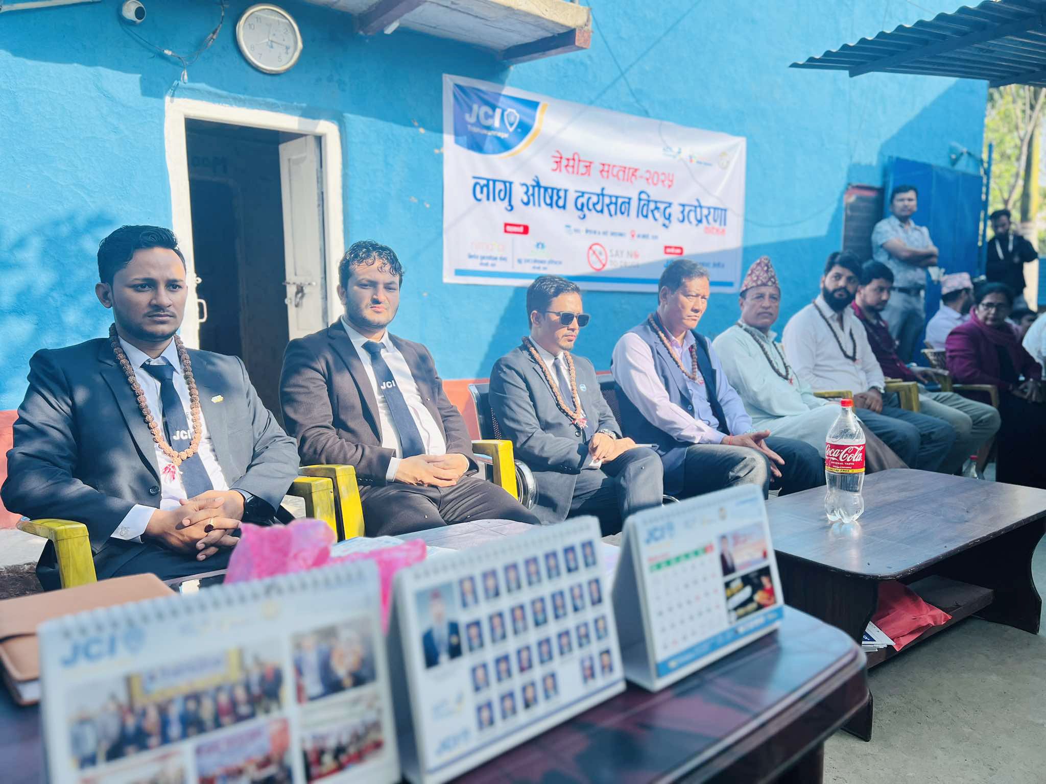 त्रिभुवननगर जेसीजले जेसीज सप्ताह–२०२५ को दोस्रो दिन लागू औषध दुर्व्यसन विरुद्ध उत्प्रेरणा कार्यक्रम सम्पन्न गरेको छ । सप्ताहको दोस्रो दिन आईतवार घोराही १७ गैरागाँउ स्थित निर्णय पुनर्स्थापना केन्द्र र बुद्ध ईन्टरनेशनल हस्पिटलसँग सहकार्यमा लागू औषध दुर्व्यसन विरुद्ध उत्प्रेरणा कार्यक्रम सम्पन्न गरिएको हो । त्रिभुवननगर जेसीज वर्ष २०२५ का अध्यक्ष टंकबहादुर रावतको अध्यक्षता तथा घोराही उपमहानगरपालिका वडा नम्वर १७ का वडा अध्यक्ष रामलौटन चौधरीको प्रमुख आतिथ्यतामा लागू औषध प्रयोगकर्ता ३५ बढीलाई लागू औषध दुर्व्यसन विरुद्ध उत्प्रेरणा गरिएको हो । कार्यक्रममा आध्यात्मिक वक्ता डा. भोलनाथ योगी र फिजिसियन डा. अभ्यास पोखरेलले सहभागीहरूलाई दुर्व्यसनको असर र समाधानका उपायबारे मार्गदर्शन गर्नुभएको थियो । कार्यक्रममा अतिथिका रूपमा दाङ महिला जेसीजकी संस्थापक अध्यक्ष निर्मला गौतम, बुद्ध इन्टरनेशनल हस्पिटलका प्रमुख कार्यकारी निर्देशक बालाराम शर्मा, तथा निर्णय पुनर्स्थापना केन्द्रका उपाध्यक्ष विष्णु वलीको उपस्थिति रहेको थियो । श्यामकुमारी गिरीको जेसीज आस्थापाठ, गणेश वलीको जेसीज मिसन तथा भिजन प्रस्तुती र दोस्रो दिनको कार्यक्रम संयोजक किरण न्यौपानेको स्वागत मन्तव्यबाट सुरु भएको कार्यक्रममा जेसीज सप्ताह कार्यक्रमका मूल संयोजक बाबुराम पाण्डेयले सप्ताहका गतिविधिबारे प्रकाश पार्नुभएको थियो भने कार्यक्रमको सहजीकरण महासचिव कृष्णदेव थापा मगरले गर्नुभएको थियो । जेसीज सप्ताह कार्यक्रमका मूल संयोजक बाबुराम पाण्डेयले जानकारी दिनुभयो ।