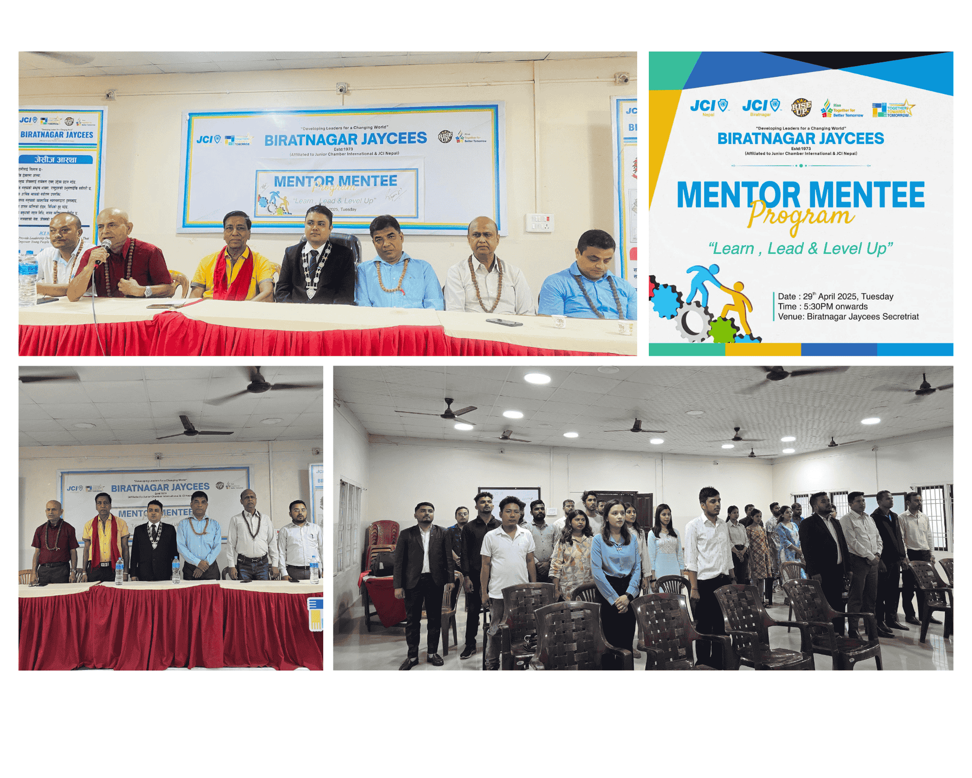 विराटनगर, वैशाख १६ – नेपाल जेसीजको निर्देशनअनुसार विराटनगर जेसीजले “Learn, Lead & Level Up” भन्ने मूल नारासहित Mentor-Mentee कार्यक्रम सफलतापूर्वक सम्पन्न गरेको छ।