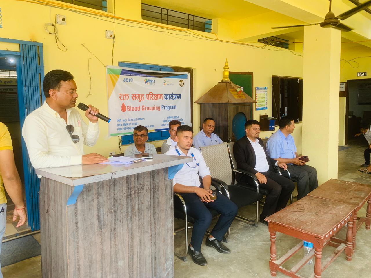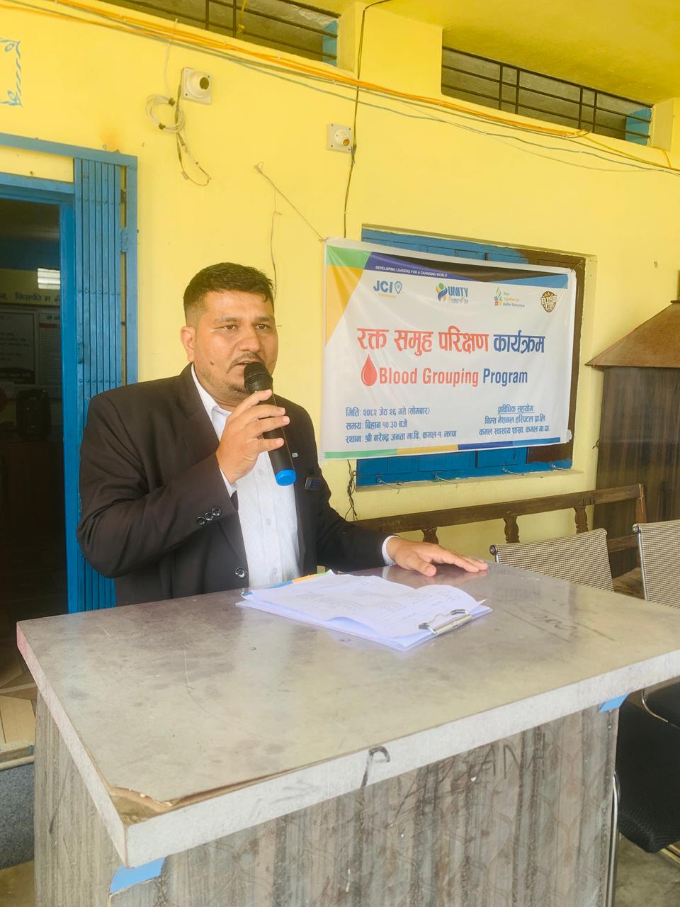 मिति २०८२ साल जेष्ठ २६ गते सोमबार तदनुसार 09, June, 2025 का दिन कमलनगर जेसीजको आयोजनामा, निम्स नेशनल हस्पिटल प्रा.लि. तथा कमल स्वास्थ्य शाखाको प्राविधिक सहयोगमा श्री नरेन्द्र जनता माध्यमिक विद्यालय कमल–०१ सरङपाडामा अध्ययानरत विद्यार्थीहरुको रक्त परिक्षण कार्यक्रम सफलतापूर्वक सम्पन्न भएको छ ।
