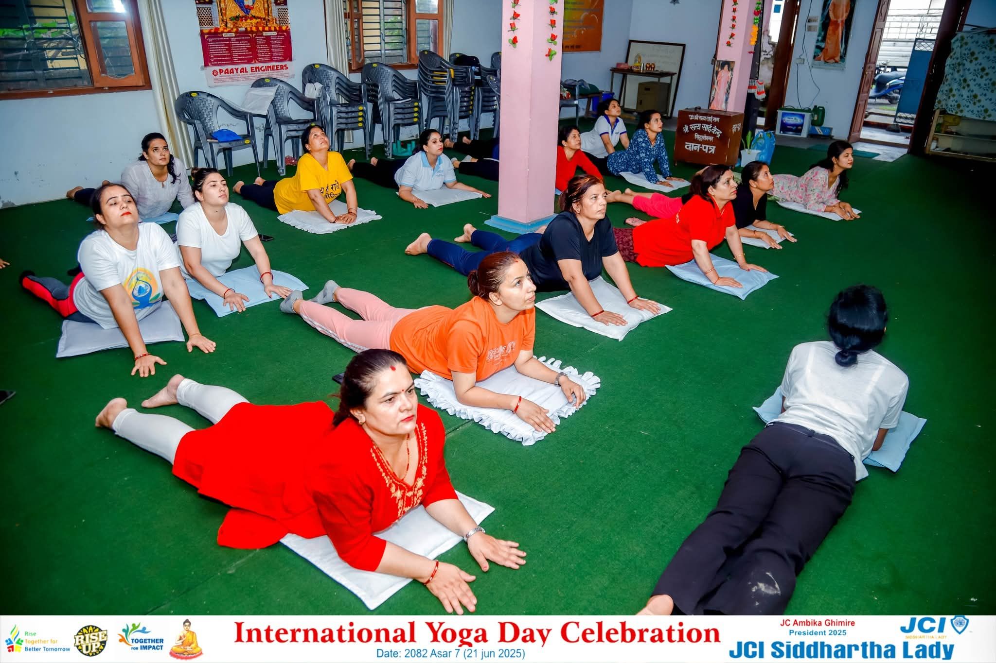 जेसीआई सिद्धार्थ लेडि द्वारा विश्व योग दिवस को अबसर पारी योग कार्यक्रम सम्पन्न गरेको छ। सस्थाका वर्तमान अध्यक्ष जेसी अम्बिका घिमिरेको सभा अध्यक्षतामा सम्पन्न कार्यक्रमको प्रमुख अतिथी सस्थाका वर्ष 2003 का अध्यक्ष जेसि बिनिता श्रेष्ठ रहनु भएको थियो। महासचिव जेसि कल्पना खनालज्युको संचालनमा भएको यश कार्यक्रममा ललिता योगा स्टुडियो का संचालक ललिता बछारज्युले योगाको विभिन्न आशन सङै शुस्म ब्यायाम सिकाउनु भएको थियो। कार्यक्रममा 20 जनाको उपस्थिति रहेको थियो भने यश कार्यक्रम को सम्योजक जेसि अन्जु घिमिरेले गर्नु भएको थियो। मन, शरीर र आत्मा लाई सन्तुलन राख्नको साथै शारीरिक र मानशिक रुपमा पनि स्वस्थ रहनको लागि योग आवश्यक रहेको छ ।