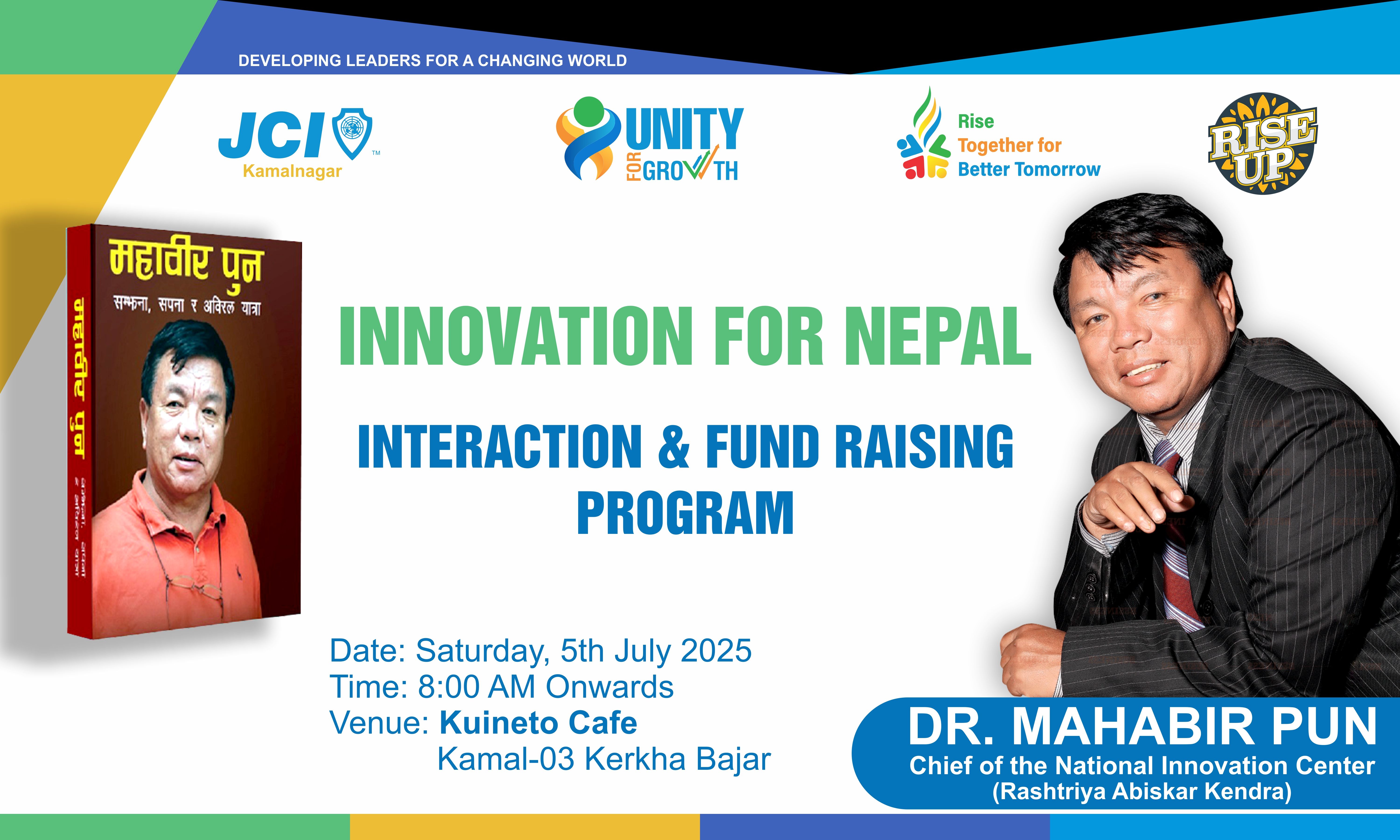 JCI Nepal (नेपाल जेसीज) is a non-profit voluntary membership based organization of young active citizens age 18 to 40 working in Nepal since 1964 for developing the Leadership, Personality and Entrepreneurship skills of young people of Nepal. Dr Bhekh Bhadur Thapa is the founder President of JCI Nepal (नेपाल जेसीज).