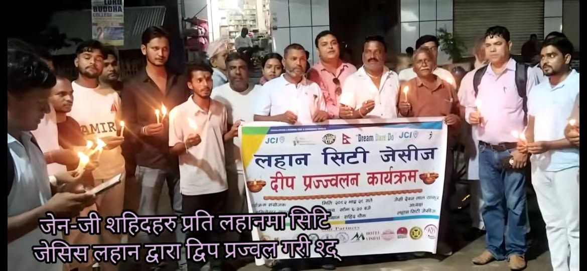 जेनेजी आन्दोलनका क्रममा सहादत प्राप्त गरेका सहिदहरूप्रति लहान सिटी जेसीजले श्रद्धाञ्जली अर्पण गरेको छ। लहान सिटी जेसीजका अध्यक्ष देवन लाल ठाकुरको नेतृत्वमा आयोजित कार्यक्रममा सहभागीहरूले दीप प्रज्वलन गर्दै मृतक आत्माको चिरशान्तिको कामना गरेका थिए।