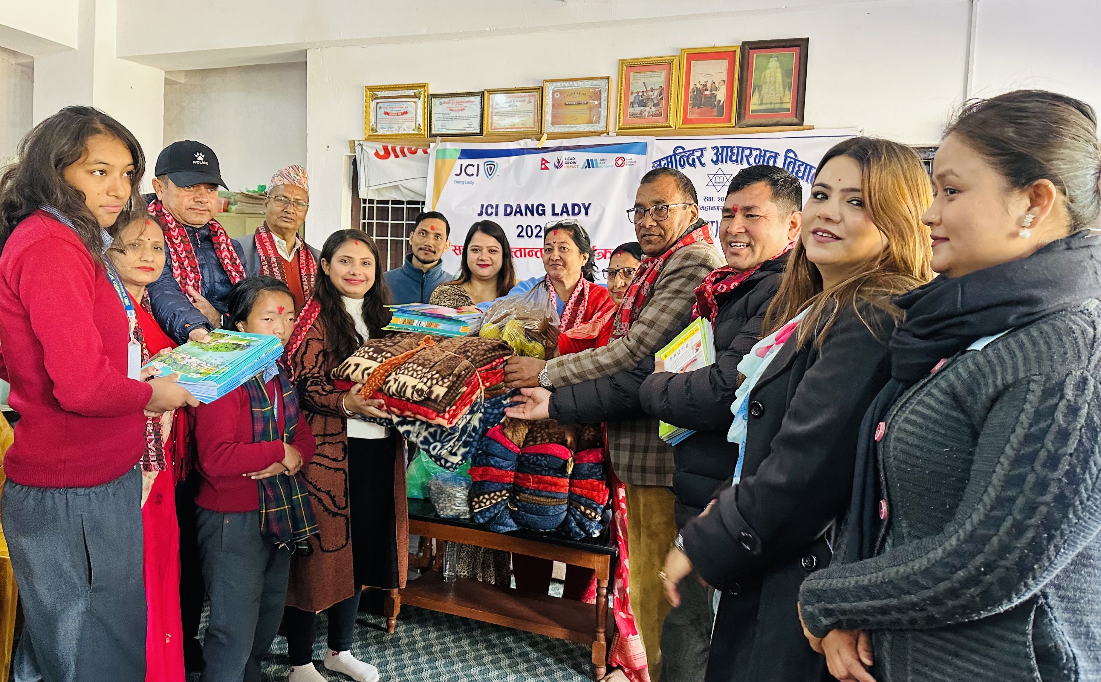 मिति २०८२/१०/९ गते शुक्रबारको दिन दाङ महिला जेसीज वर्ष २०२६ का शाखा अध्यक्ष जेसी अर्चना शर्मा ज्युको अध्यक्षता एवम बाल मन्दिर आधारभुत विधालय व्यवस्थापन समितिका अध्यक्ष श्री नर बहादुर बुढाथोकि ज्युको प्रमुख आतिथ्यमा घोराही स्थित बाल मन्दिर आधारभुत बिधालयमा फरक क्षमता भएका बाल बालिका न्यानो कपडा, स्टेशनरि सामाग्रि, फलफुल हस्तान्तरण गरि सहयोग कार्यक्रम सम्पन्न गरियो