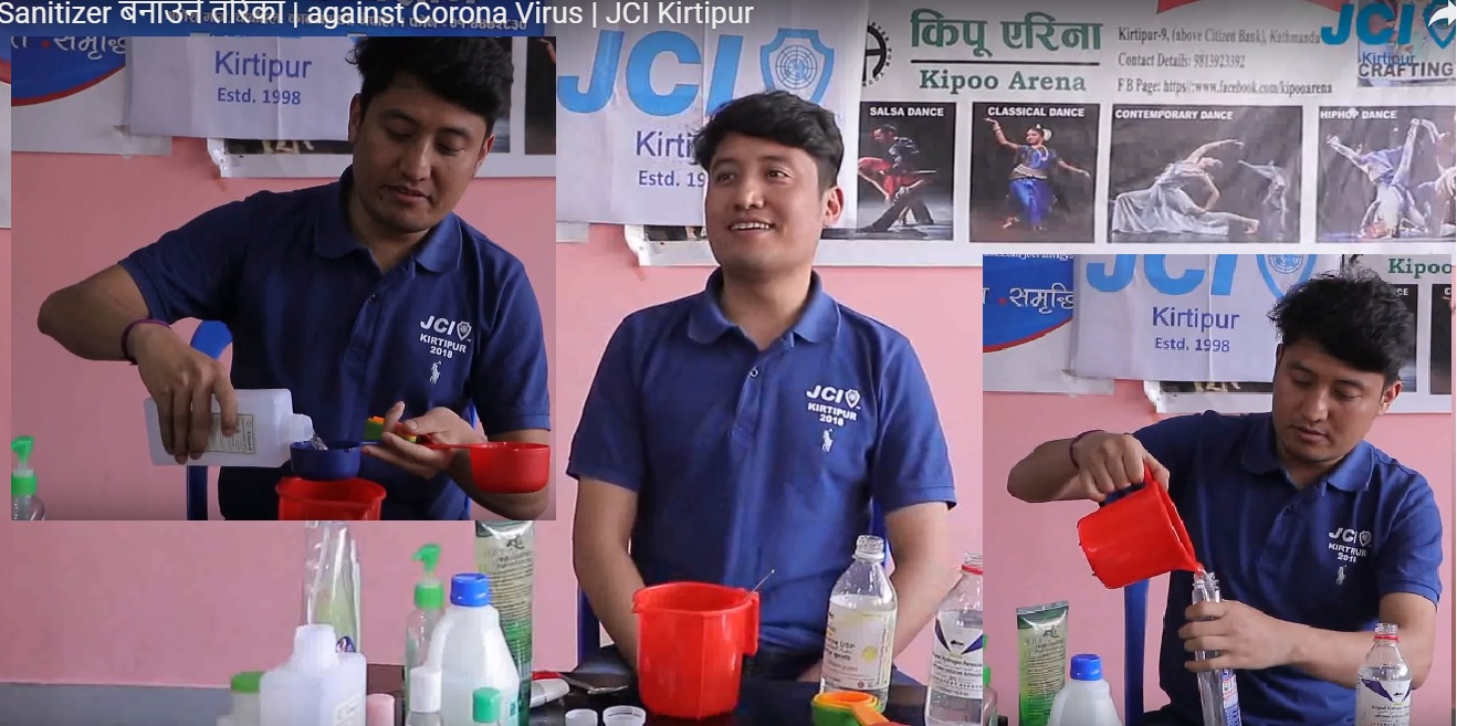 There were about 20 participants eager to learn how sanitizer can be made in home with simple ingredients found in home. Trainer was JC Binesh Dongol (EVP of JCI Kirtipur).