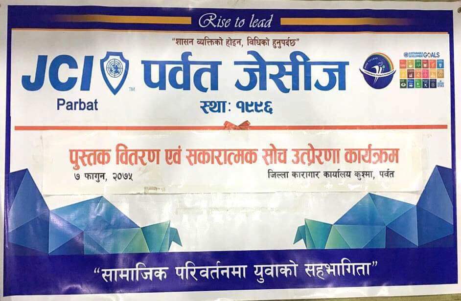 पर्वत जेसीजको आयोजनामा प्रजातन्त्र दिवसका अवसर पारी जिल्ला कारागार पर्वतमा रहेका बन्दीगृहमा रहेका ब्यक्तिहरुको सकारात्मक सोच विकासका लागि पुस्तक वितरण एबम् सकारात्मक सोच उत्प्रेरणा कार्यक्रम सम्पन्न भएको छ ।