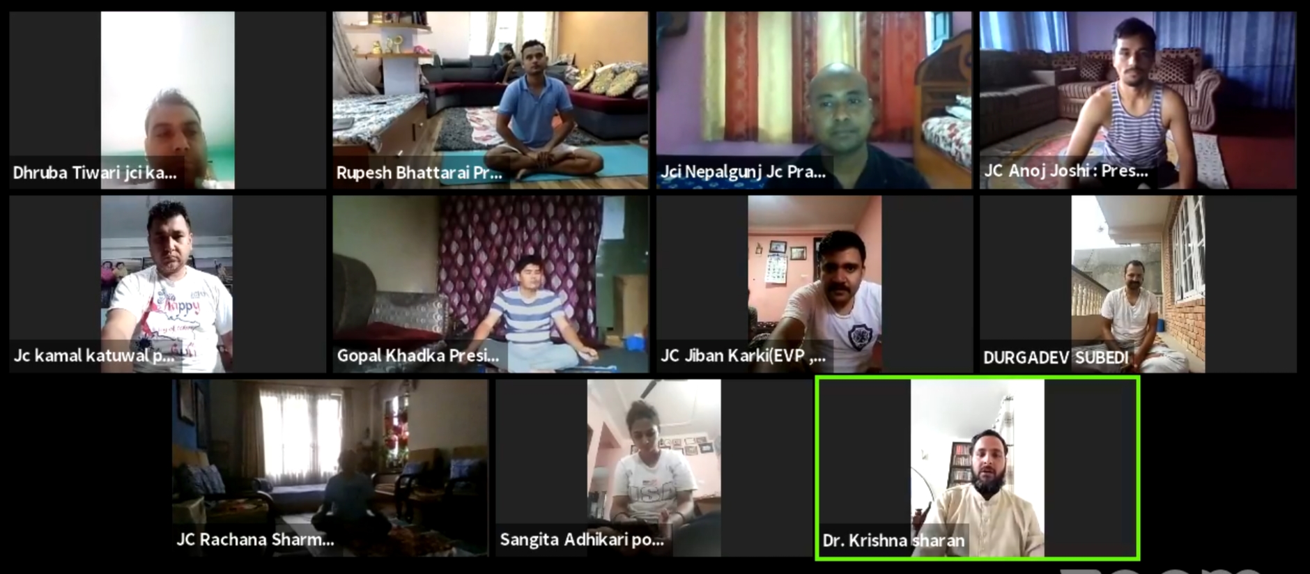 "स्वास्थ्य नै सबैभन्दा ठूलो धन हो,सधै योग गर्ने बानी बसाली स्वस्थ रहौं" जुम मार्फत १६ ओटा शाखाको संयुक्त आयोजनामा असार २० देखि श्रावण २१ एक महिना सम्म योग कक्षा संचालन भैरहेको छ। उक्त कार्यक्रममा गुरु दुर्गा देब सुवेदी तथा डा. टि. पि. धमला ज्यु ले योगा र ध्यान गराउनु भएको थियो। नेपालगन्ज जेसिजको तरफ बाट