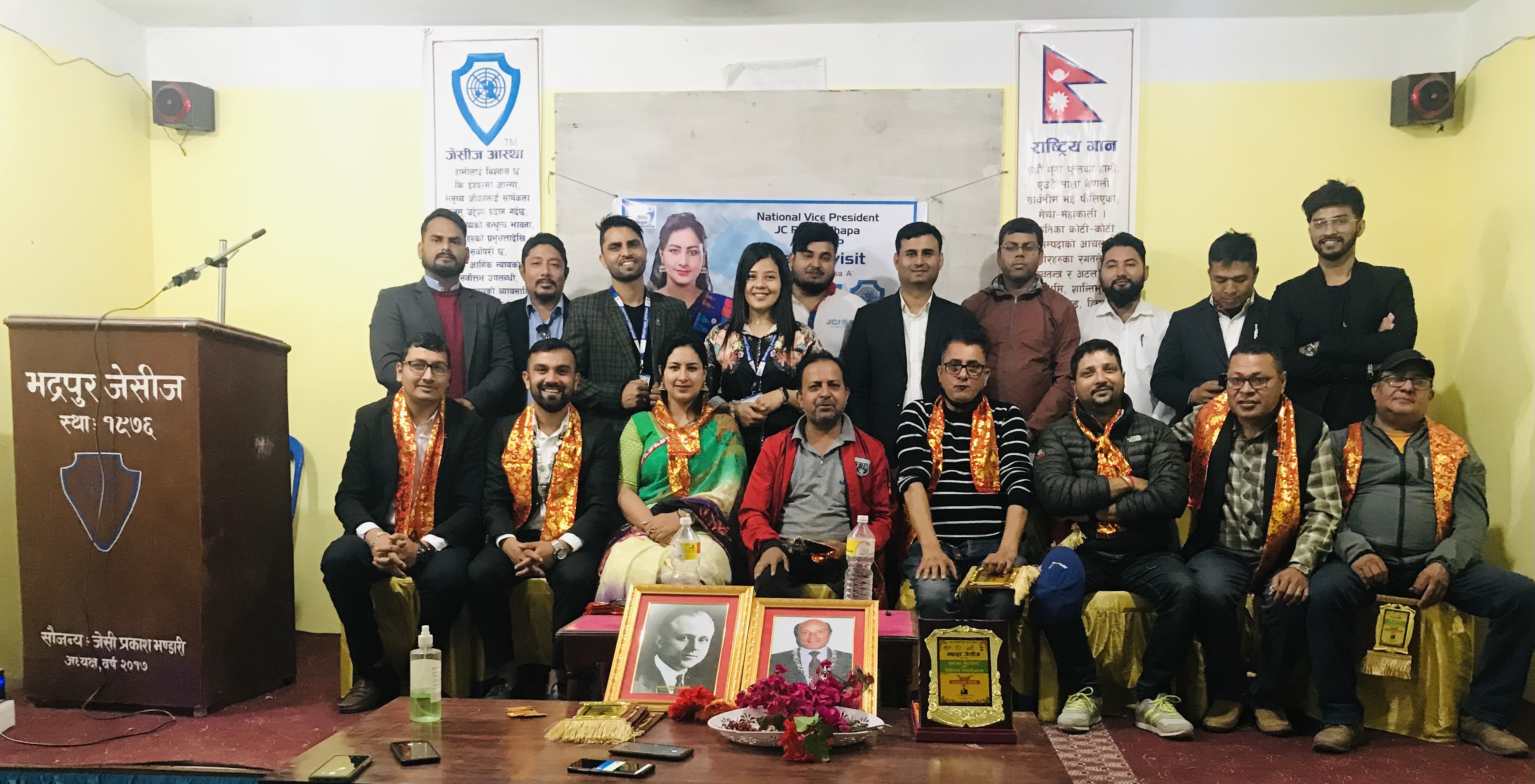प्रमुख अतिथि राष्ट्रिय उपाध्यक्ष जेसी रजनी थापा,भद्रपुर जेसीज पुर्व अध्यक्ष लोकनाथ भट्टराई,निर्तमान अध्यक्ष जेसी डिल्लीराम पोखरेल लगायतले शुभकामना मन्तव्य राख्नु भएको थियो भने स्वागत मन्तव्य जेसी अरिफ अलिले राख्नु भएको थियो । कार्यक्रम जेसीज सचिवालयमा सम्पन्न भएको थियो ।कार्यक्रममा आस्था वाचन जेसी युवराज न्योपाने गर्नुभएको थियो भने संचालन महासचिव जेसी मनाेज भट्टराईले गर्नु भएकाे थियाे। ।