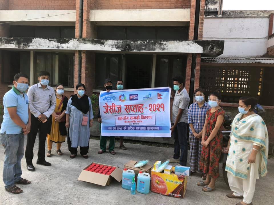 बीरगंज जेसीज को मिती २०७८ बैशाख १ गते देखि २०७८ बैशाख ८ गते सम्म हुने ८ दिने “जेसीज सप्ताह २०२१” को आज पाँचौ दिन मिती २०७८ बैशाख ५ “ सहयोग वितरण कार्यक्रम” अन्तर्गत बीरगंज नर्सिङ्ग कलेज, बीरगंज का COVID-19 प्रभावित बिधार्थीहरुलाई स्वास्थ सामग्री लगायत फलफुल वितरण गरियो .