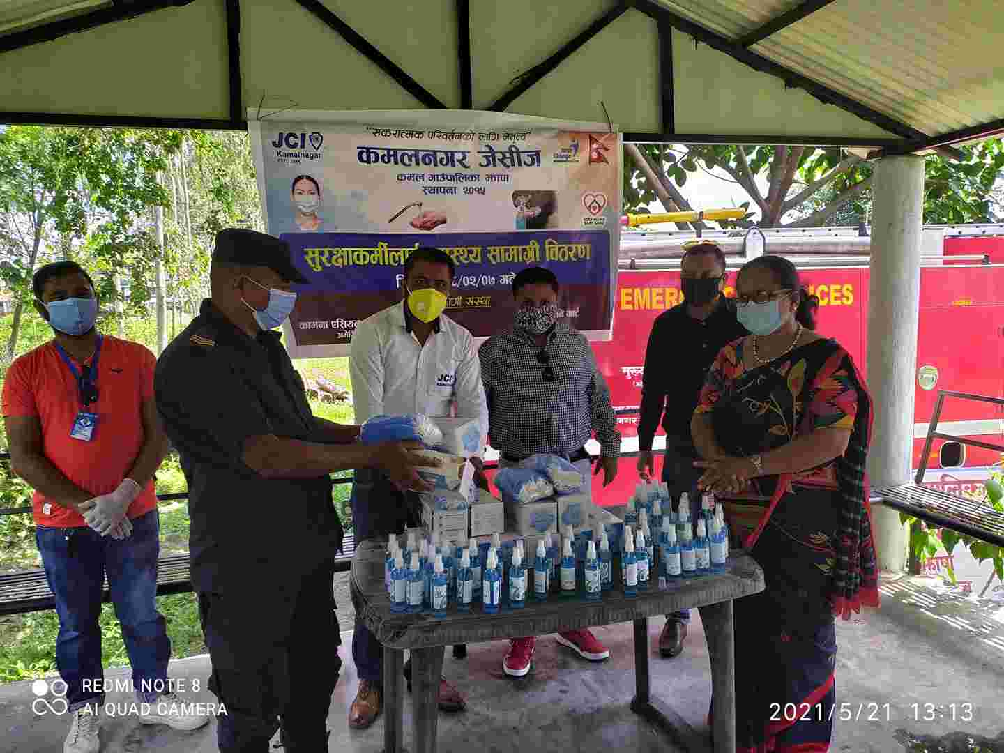 कमल, जेठ ८ ÷ कमल नगर जेसीजले कोडिभ १९ को विषम परिस्थितीमा अग्रभागमा रहेर कामगर्ने सुरक्षाकर्मिलाई स्वस्थ्य सामाग्री वितरण गरेको छ ।