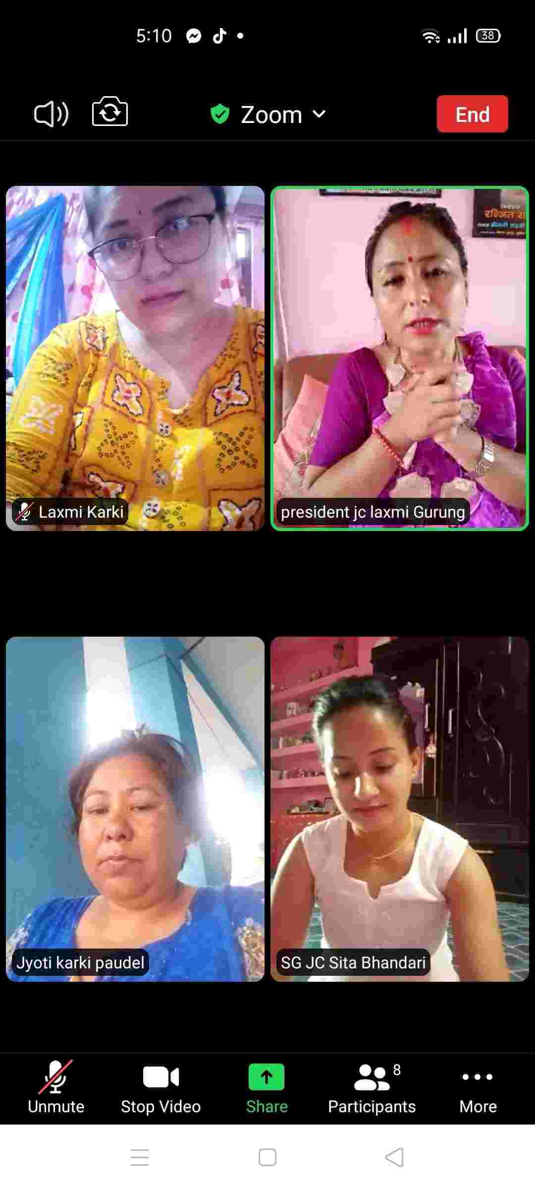 सुर्खेत महिला जेसीजकाे तेस्राे बाेर्ड बैठक मिति 2078/02/26 (June 9 2021) गते जेसी लक्ष्मी गुरूङ ज्युकाे अध्यक्षता सम्पन्न गरियाे । ।