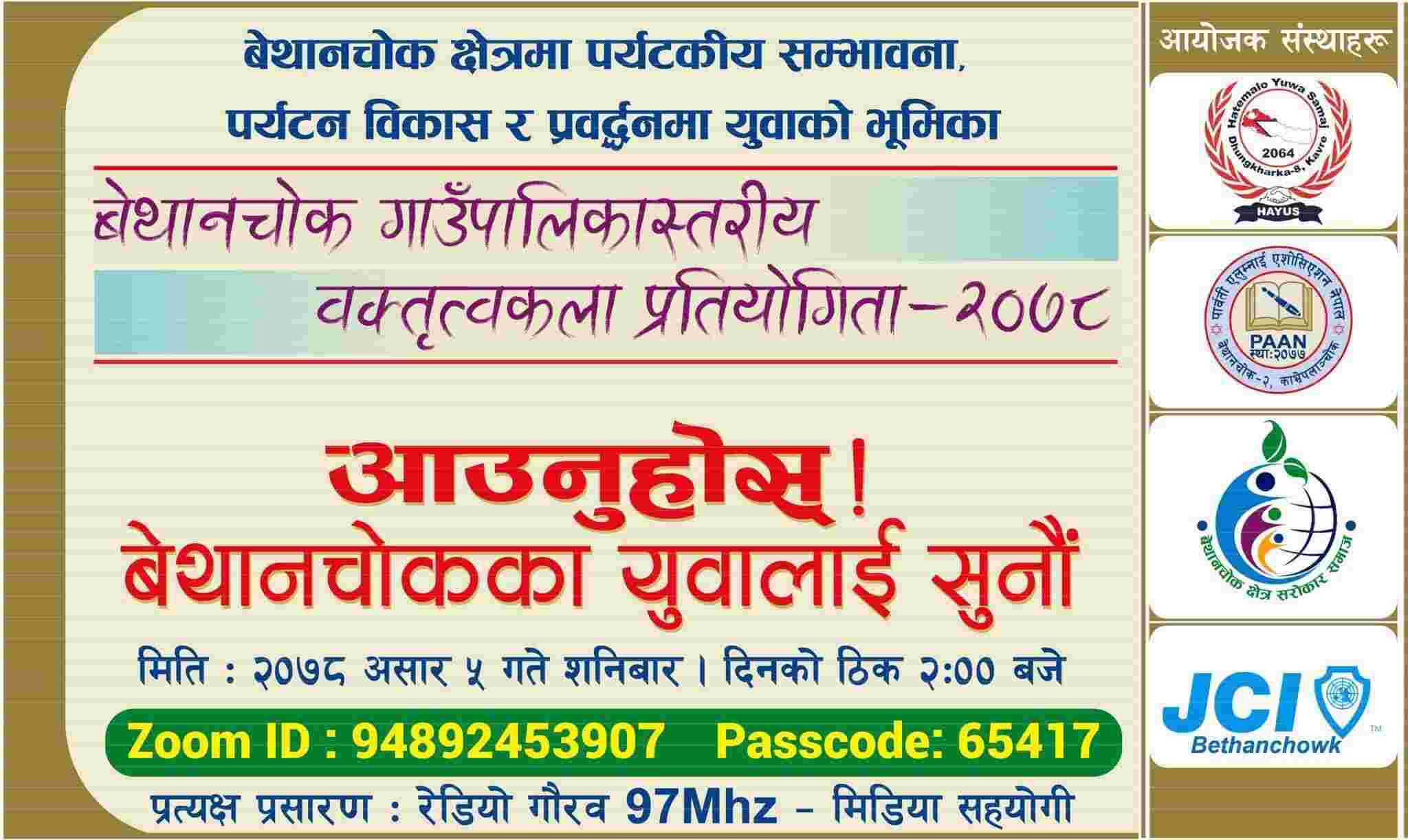 बेथानचोक जेसीजद्रारा विभिन्न संस्थाको सहकार्यमा वक्तृत्वकला कार्यक्रम सम्पन्न