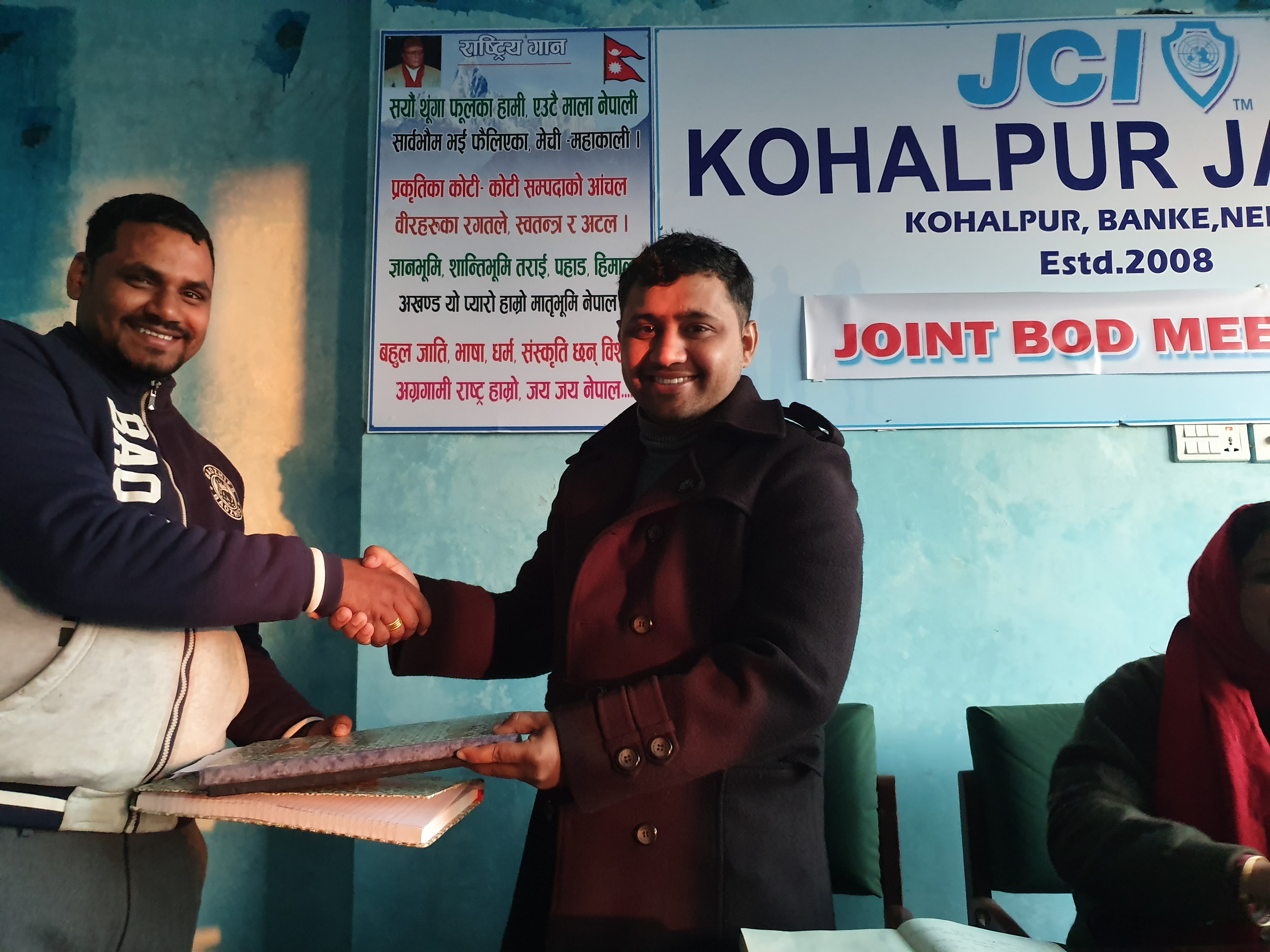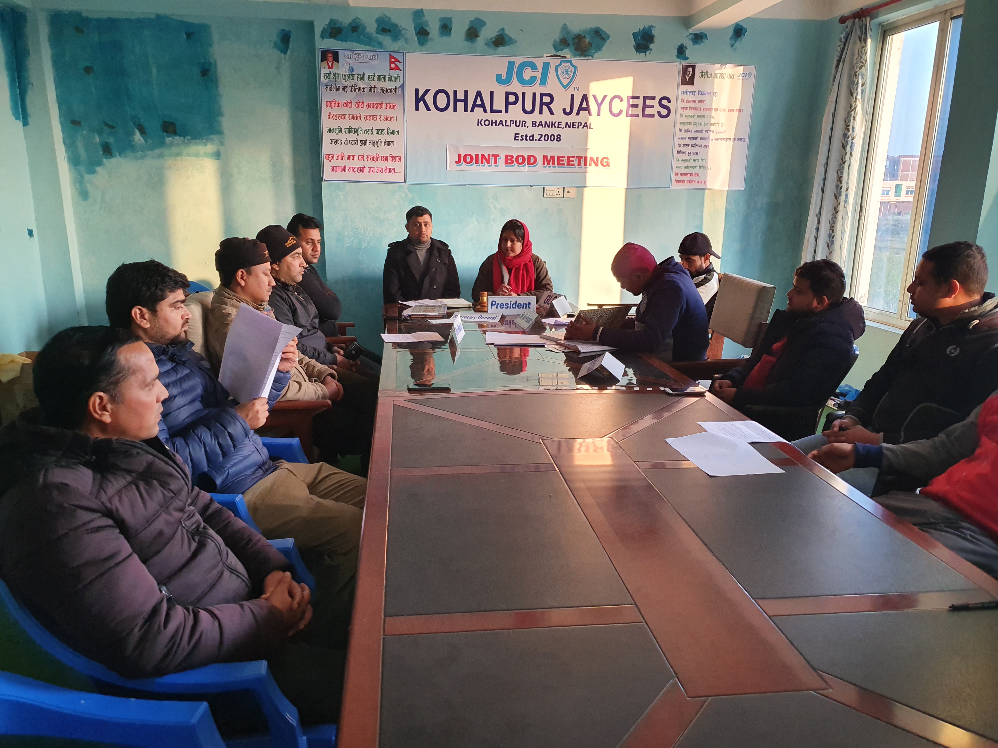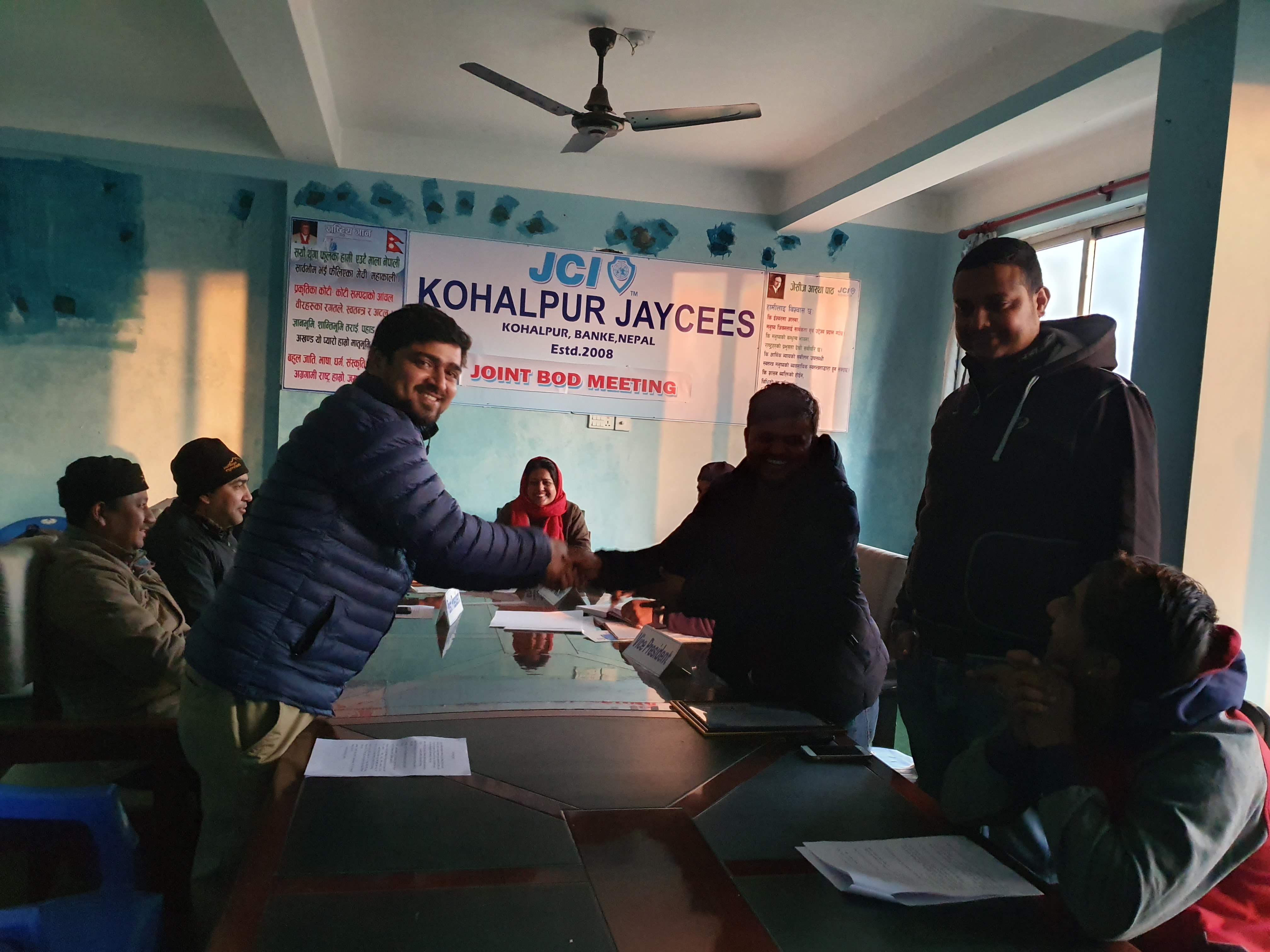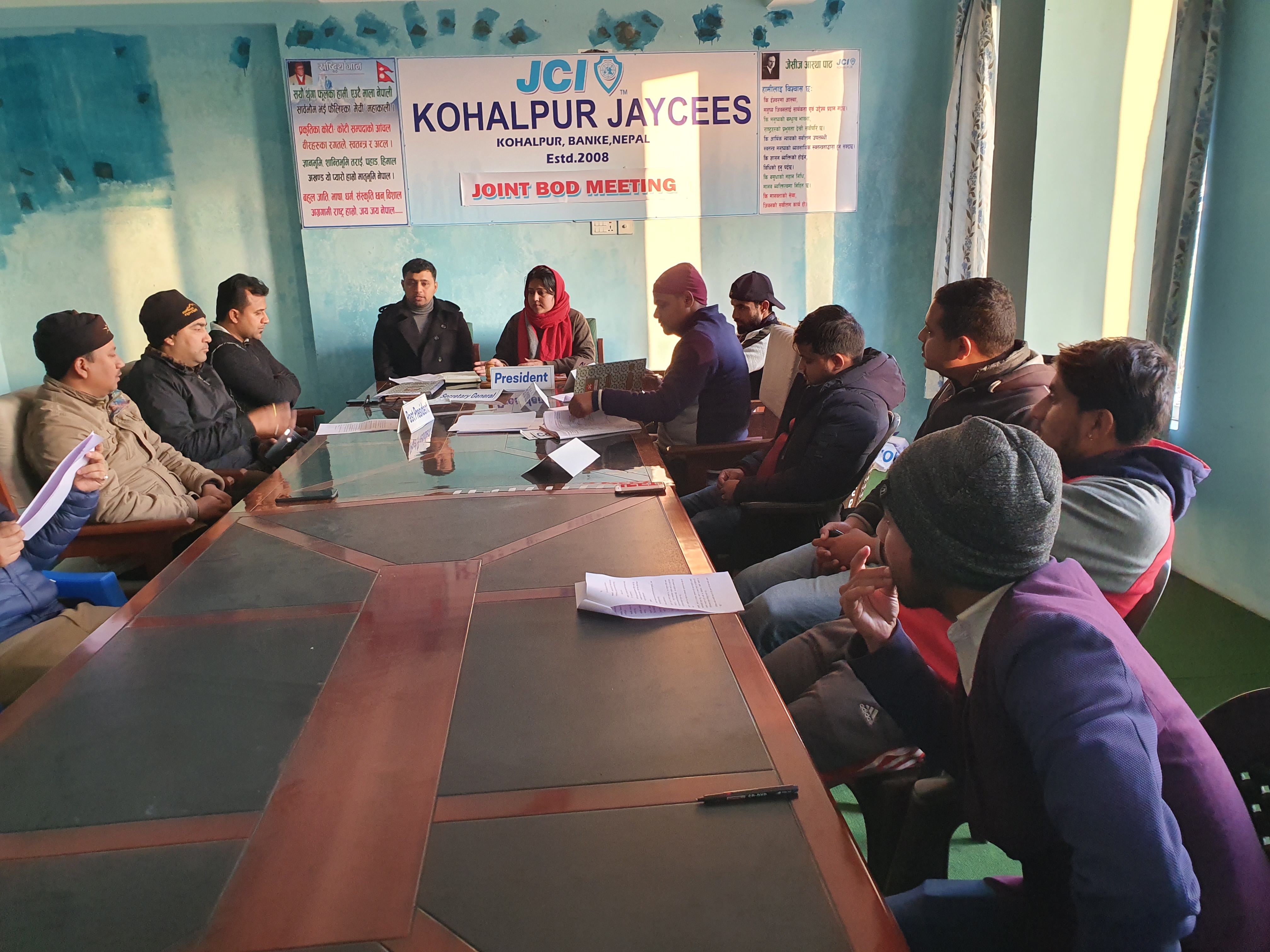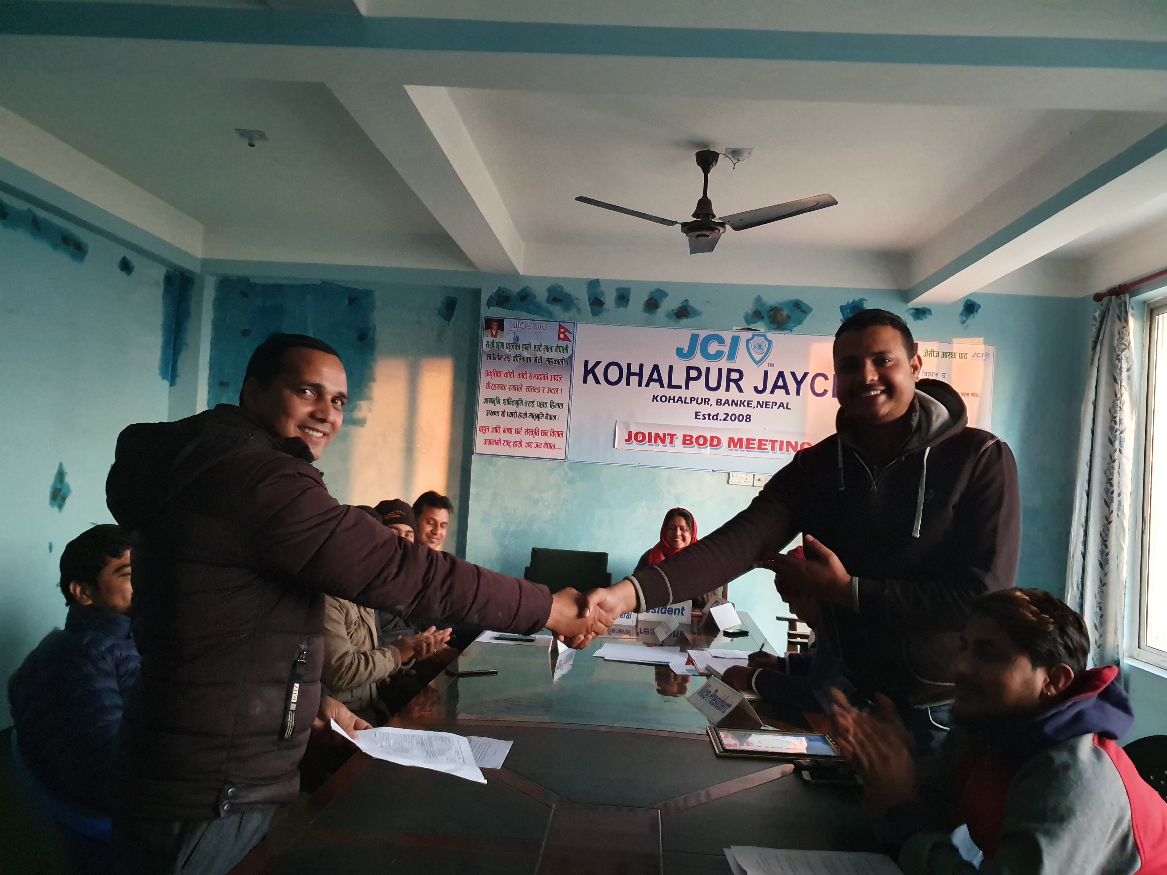 Joint board meeting of jci kohalpur 2020 was held on 13th january 2020 under the chairmanship of president 2019 and president 2020 jc sangita subedi and jc sangam khanal. Guding by past presidents providing all the documents of 2019 executive committe by 2020 was done on secretrain office of jci kohalpur.
