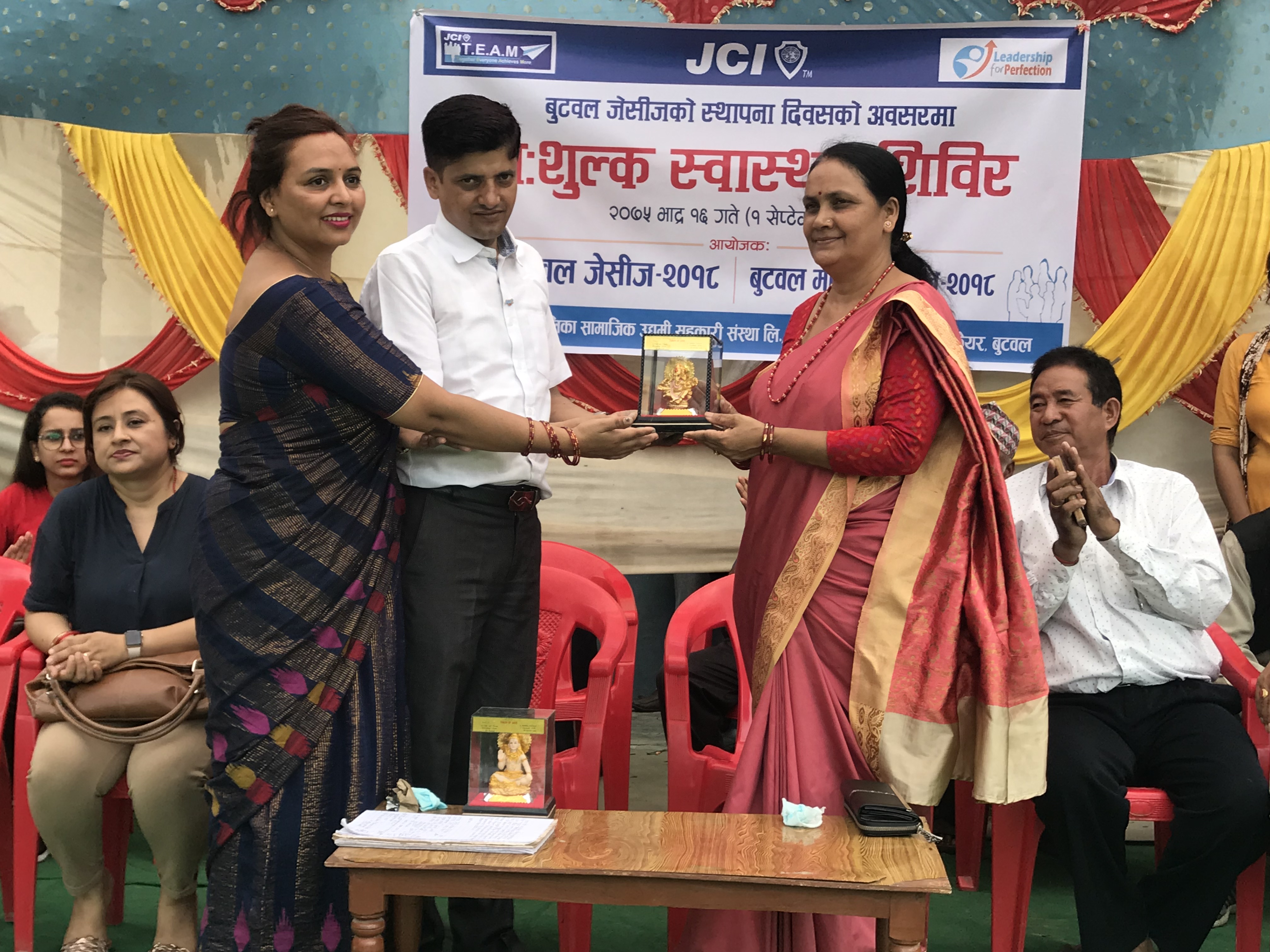 बुटवल जेसीजको स्थापना दिवसको अवसरमा बुटवल जेसीजले मातृत्व प्रदा नगरेको बुटवल महिला जेसीजसँगको सहकार्यमा बुटवल उपमहानगरपालिका वडा नं.१७, १८ र १९ का स्थानीय बासिन्दालाई लक्षित गरि (रक्तचाप, मधुमेह तथा आँखा जाँच) निःशुल्क स्वास्थ्य शिविर सम्पन्न गरेको छ । बुटवल महिला जेसीज वर्ष २०१८ र बुटवल महिला जेसीज वर्ष २०१८ को संयुक्त आयोजनामा यही भाद्र १६ गते बुटवल जेसीजको स्थापना दिवसका दिन “निःशुल्क स्वास्थ्य शिविर” कार्यक्रम सम्पन्न भएको हो । बुटवल उपमहानगरपालिका वडा नं.१७ मोतिपुर स्थित मोतिपुर उच्च मा.वि.मा बिहान ९ः०० बजेदेखि बुटवल जेसीज वर्ष २०१८ का अध्यक्ष जेसी यम प्रसाद तिवारी ज्यू तथा बुटवल महिला जेसीजका अध्यक्ष जेसी राधिका पोखरेल ज्यूको संयुक्त अध्यक्षता रहेको उक्त कार्यक्रममा बुटवल उपमहानगरपालिका उपप्रमुख गुमादेवी आचार्य प्रमुख अतिथि रहनुभएको थियो । निःशुलक स्वास्थ्य शिविरको शुरुको औपचारिक कार्यक्रमको सञ्चालन बुटवल जेसीजका महासचिव जेसी चन्द्रमणी भसालले गर्नुभएको थियो । सामूहिक राष्ट्रिय गानसँगै शुरु भएको कार्यक्रममा बुटवल महिला जेसीजको जेसी धनु श्रेष्ठले जेसीज आस्था पाठ गर्नुभएको थियो । बुटवल जेसीजको स्थापना दिवसको अवसरमा राखिएको कार्यक्रम रहेकोले उक्त कार्यक्रमको उद्घाटन प्रमुख अतिथि गुमादेवी आचार्य ज्यूले केक काटेर गर्नुभएको थियो । बुटवल जेसीजका अध्यक्ष जेसी यमप्रसाद तिवारीज्यूले स्वागत तथा कार्यक्रमका बारेमा जानकारी गराउनुभएको थियो । तिलोत्तमा आई केयर बुटवलको आँखा रोग विशेषज्ञ डा. रोजी कार्की तथा तिलोत्तमा आई केयर यूनिटले उक्त दिनको निःशुल्क स्वास्थ्य शिविरमा आँखा जाँचका लागि प्रमुख भूमिका खेलेको थियो । उक्त दिनको शिविरमा आँखा जाँचका दौरानमा आँखाको कुनै पनि शल्यक्रिया गर्नुपर्ने बिरामी रहेमा त्यस्ता बिरामीलाई तिलोत्तमा आई केयर बुटवलले ५०% छुटमा शल्यक्रिया गरिदिने कुराको जानकारी डा. रोजी कार्कीले आफ्ना मन्तव्यका क्रममा बोल्नुभएको थियो । प्रमुख अतिथि तथा बुटवल उपमहानगरपालिकाका उपप्रमुख गुमादेवी आचार्यले उक्त कार्यक्रममा बोल्दै बुटवल जेसीजले बुटवल नगरभित्र गरेका पुराना कार्यक्रमको स्मरण गराउँदै मुक्तकण्ठले प्रसंसा समेत गर्नुभएको थियो । बुटवल जेसीजले समाजमा देखाएको उत्तरदायित्वप्रति अन्य संघ संस्थाले पनि सिक्न जरुरी रहेको रहेको बताउनुभएको थियो । प्रमुख अतिथिको मन्तव्यसँगै औपचारिक कार्यक्रमको समापन गर्दै दोस्रो चरणको कार्यक्रम निःशुल्क स्वास्थ्य शिवरमा सहभागी हुन सम्पूर्ण उपस्थित महानुभावहरुलाई बुटवल जेसीज महासचिव जेसी चन्द्रमणी भुसालले आग्रह गरेपश्चात् स्वास्थ्य शिविर कार्यक्रम शुरु भएक