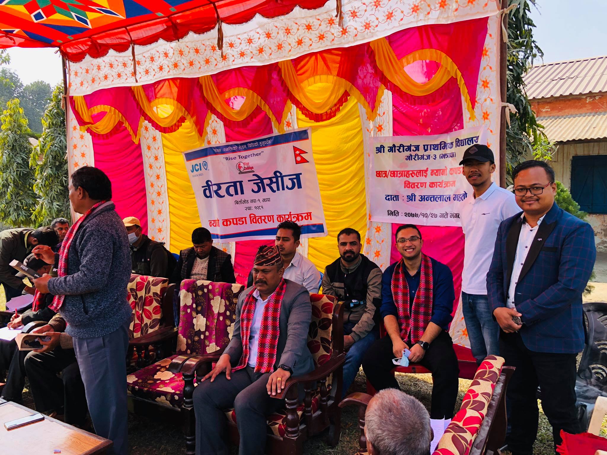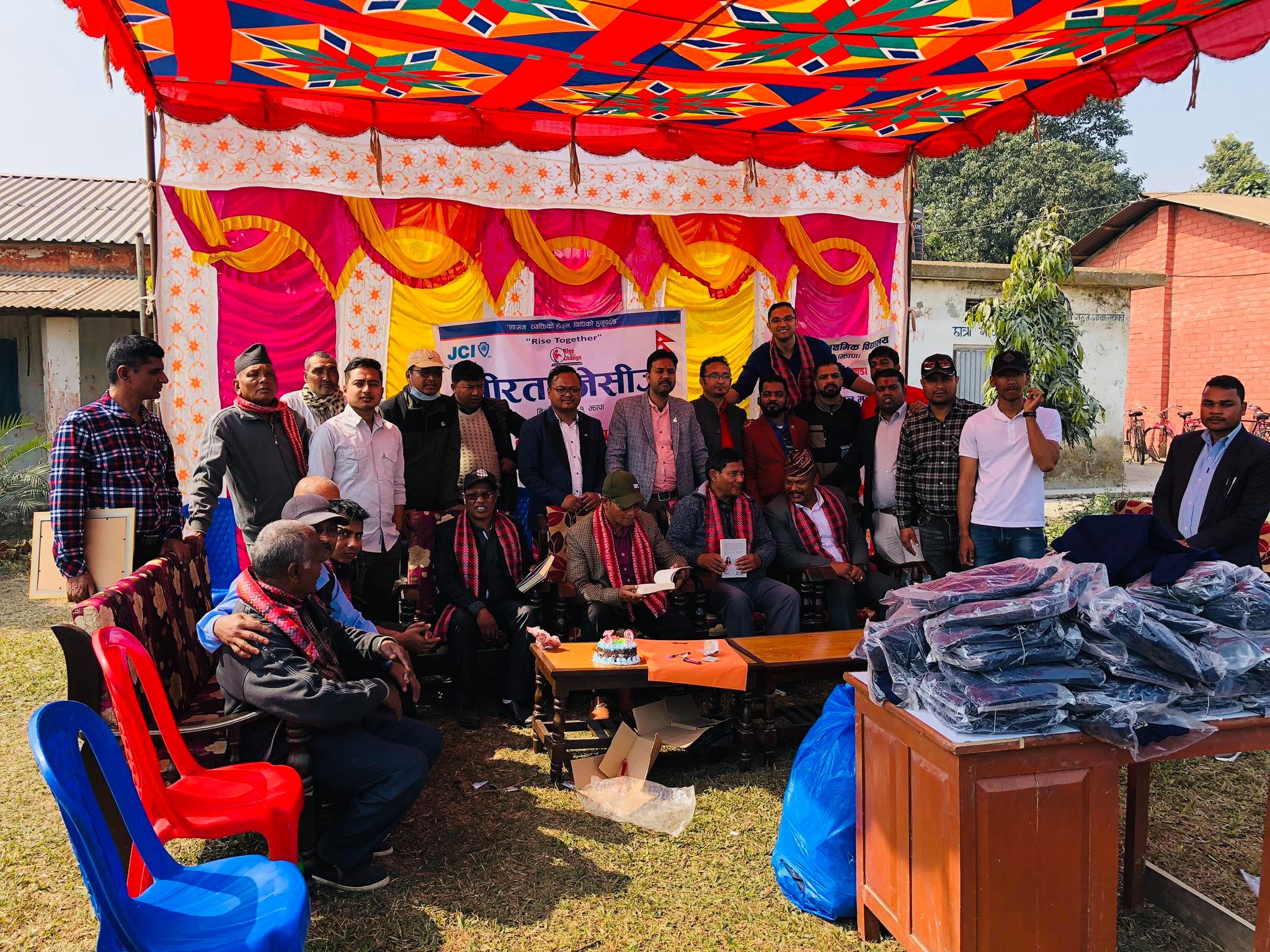 वीरता जेसीजको आयोजनामा झापाको गौरीगञ्ज –३ मा रहेको गौरीगञ्ज प्राथमिक विद्यालयमा अध्ययनरत् विद्यार्थीलाई स्वीटर वितरण गरिएको छ । वीरता जेसीजका जनसम्पर्क अधिकारी अनन्तलाल महतोले आफ्नो जन्मदिनमा गौरीगञ्ज प्राथमिक विद्यालयमा अध्ययनरत् एक सय ६० जना विद्यार्थीलाई ५५ हजार मूल्य वरावरको स्वीटर वितरण गरेका हुन् । वीरता जेसीजका अध्यक्ष राजीव धिमालको अध्यक्षता तथा गौरीगञ्ज गाउँपालिकाका अध्यक्ष बाबुराजा श्रेष्ठको प्रमुख आतिथ्यमा भएको कार्यक्रममा कार्यक्रम संयोजक तथा जनसम्पर्क अधिकारी अनन्तलाल महतोले स्वागत गरेका थिए । कार्यक्रममा वीरता जेसीजका निवर्तमान अध्यक्ष मिजाश पोखरेल , अध्यक्ष धिमाल , कार्यक्रम संयोजक अनन्तलाल महतोलगायतले विद्यार्थीलाई स्वीटर वितरण गरेका थिए कार्यक्रममा विद्यालयका प्रधानाध्यापक हरिलाल यादवले उक्त विद्यालयमा विपन्न वर्गका अभिभावकका छोराछोरी अध्ययन गर्न आउने र उनीहरु जाडोको समयमा एकसरो लुगाको भरमा लुगलुग काम्दै आउने गरेकोमा वीरता जेसीजले स्वीटर प्रदान गरेर विद्यार्थीलाई ठूलो गुन लगाएको बताए । उनले यस्तो कार्यमा सहयोग गर्न सरोकारवाला सवैलाई आग्रह गरेका थिए । कार्यक्रममा गौरीगञ्ज गाउँपालिकाका अध्यक्ष श्रेष्ठ , उपाध्यक्ष दिपिन्द्र थापा , वडा नं. ३ का वडाध्यक्ष मखना महतोलगायतले मानवताको सेवामा क्रियाशिल वीरता जेसीजले गरेको कार्यको प्रशंसा गरेका थिए । वीरता जेसीजका कार्यकारीणी उपाध्यक्ष अशोक चौधरीले कार्यक्रममा आस्था वाचन गरेको कार्यक्रममा जेसीआई मिसन भिजन वाचन खेल संयोजक दिपेन धिमालले गरेका थिए । वीरता जेसीजका कार्यकारीणी उपाध्यक्ष विकास वस्नेतले धन्यवाद ज्ञापन गरेको कार्यक्रमको सञ्चालन महासचिव लोकचन्द्र श्रेष्ठ( एलसी)ले गरेको अवार्ड संयोजक सञ्जय राजवंशीले जानकारी दिए ।