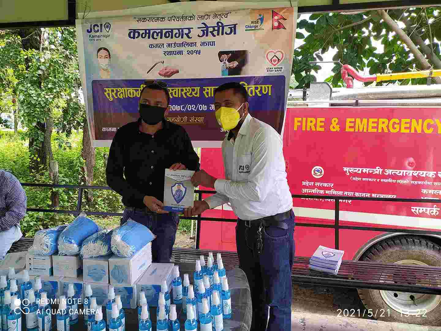 कमलनगर जेसीज द्वारा कमल गाउँपालिका,वडा कार्यालयहरु ,अस्पताल ,प्रहरी चौकी ,एम्बुलेन्स लाई सोडियम हाईपोक्लोराईड प्रदान