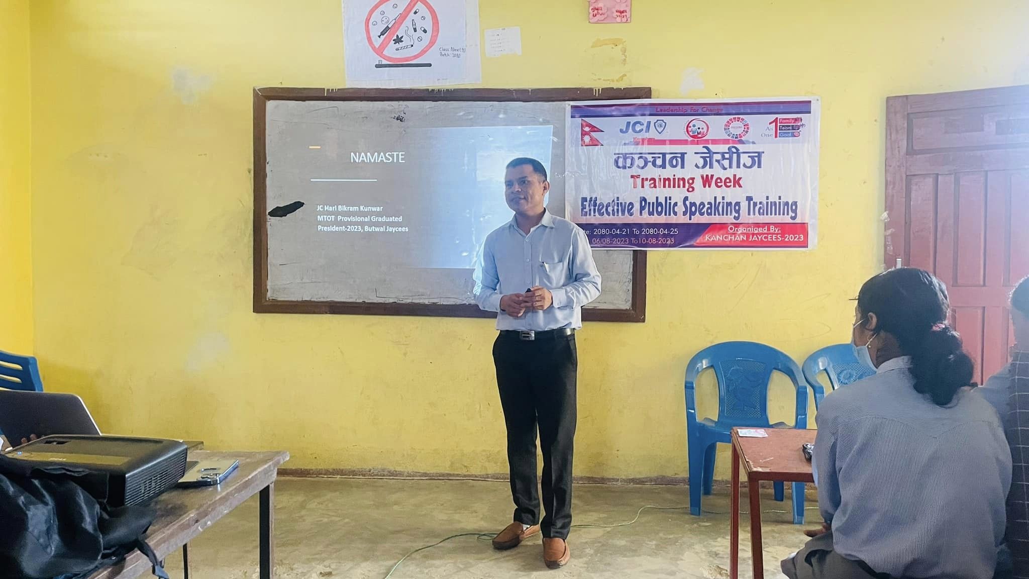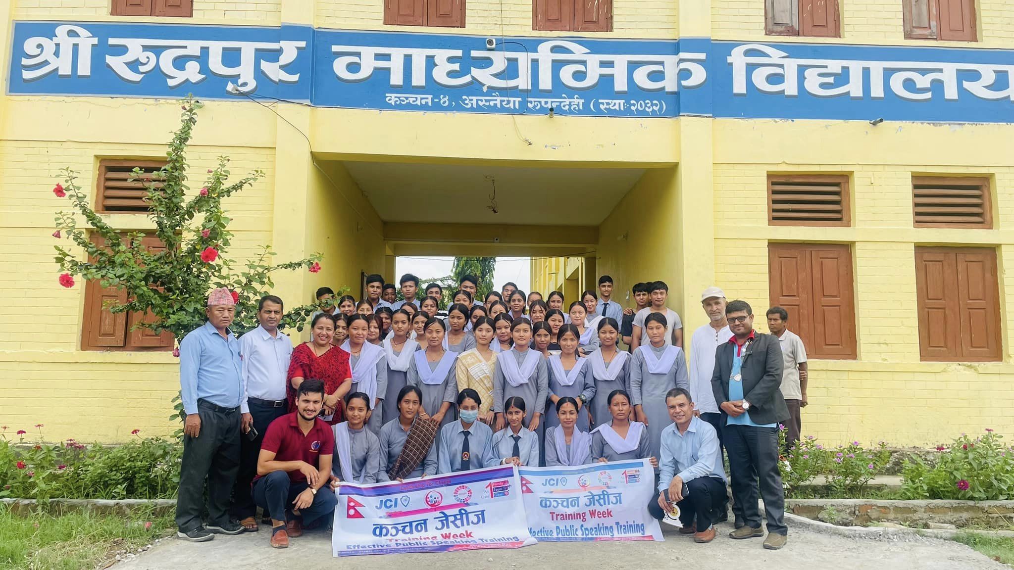 कञ्चन जेसीज बर्ष २०२३ को आयोजनामा आजबाट संचालन भएको तालिम सप्ताह कार्यक्रमको तेस्रो दिन कञ्चन गाउँपालिका वडा नं ४ श्री रुद्रपुर मा वि मा सम्पन्न भएको उक्त कार्यक्रममा कञ्चन गाउँपालिका वडा नं ४ का वडा अध्यक्ष श्री केशर बहादुर खत्री ज्यूको प्रमुख अतिथ्यता साथै प्रमुख प्रशिक्षक कञ्चन जेसीज बर्ष २०२३ का निवर्तमान अध्यक्ष, नेपाल जेसीज क्षेत्र घ तालिम आयुक्त बर्ष २०२३, जेसी राजन शर्मा पौडेल र प्रशिक्षक जेसी हरिबिक्रम कुँवर अध्यक्ष बर्ष २०२३ बुटवल जेसीज, विशिष्ठ अतिथि विद्यालय व्यवस्थापन समितिका अध्यक्ष, विद्यालयका प्र अ अतिथिहरुमा वडा नं ४ का वडा सदस्य ज्यूहरु साथै विद्यालयमा अध्ययनरत विद्यार्थीहरुको सकृय सहभागितामा सम्पन्न भएको छ।उक्त कार्यक्रमको अध्यक्ष्यता कञ्चन जेसीज बर्ष २०२३ का अध्यक्ष जेसी बुद्धि प्रसाद रेग्मी ज्यूले गर्नु भएको थियो भने कार्यक्रम संचालन कञ्चन जेसीज बर्ष २०२१ शाखा अध्यक्ष, जेसीज जेसीआई नेपाल एकेडेमी संयोजक बर्ष २०२३ कि जेसी राधिका चौधरी ज्यूले गर्नु भएको थियो।