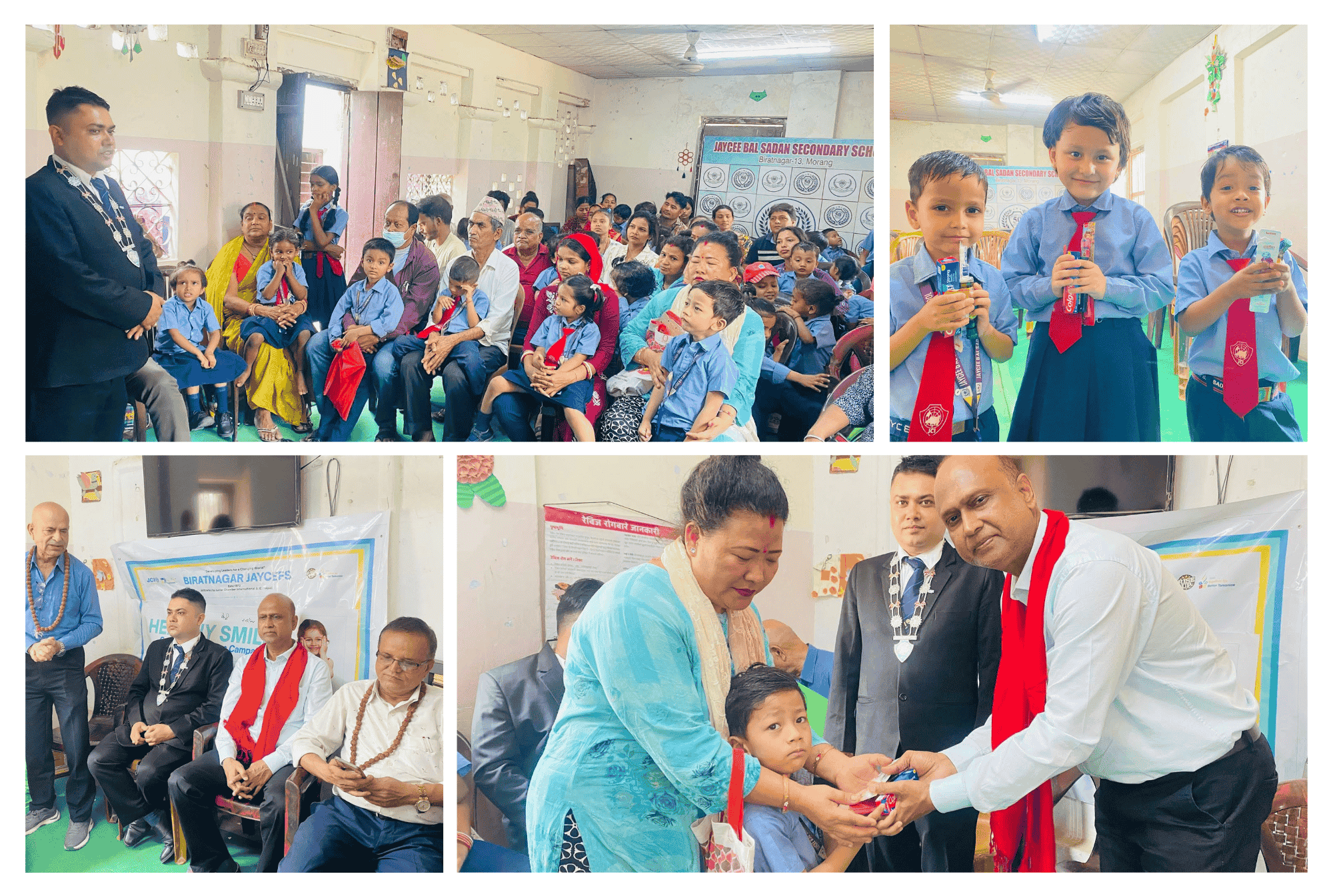 मिति २०८१ साल चैत्र महिनाको १४ गते तदनुसार मार्च २७ तारिख बिहिबारका दिन बिराटनगर जेसीजको परियोजना अन्तर्गत संचालित जेसी बाल सदन माध्यमिक विद्यालय, विराटनगर मा आयोजित "Healthy Smiles - Care and Cleanliness Campaign" कार्यक्रम मार्फत विद्यार्थीहरूलाई सरसफाइ तथा व्यक्तिगत स्वच्छताबारे जागरूक बनाउँदै आवश्यक सामग्री वितरण गरियो।