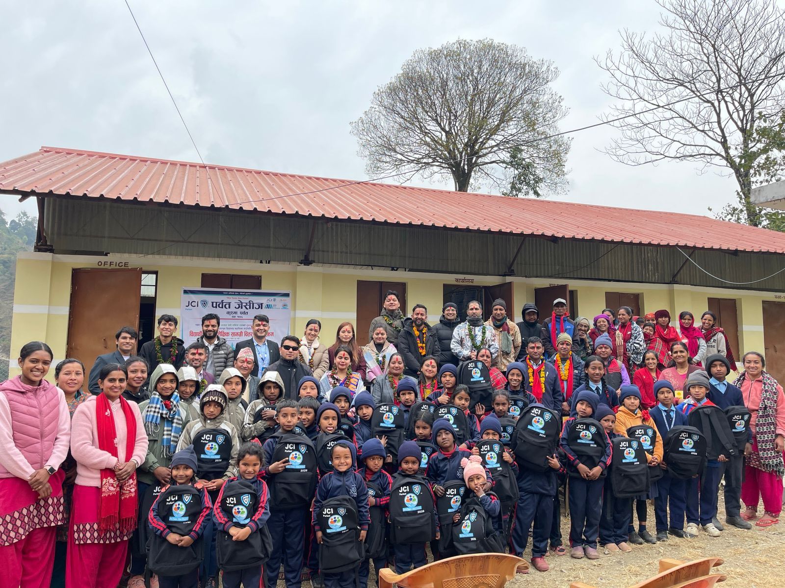 पर्वत जेसीजद्वारा फलामखानीका विद्यार्थीहरुलाई शैक्षिक सामाग्री वितरण ।