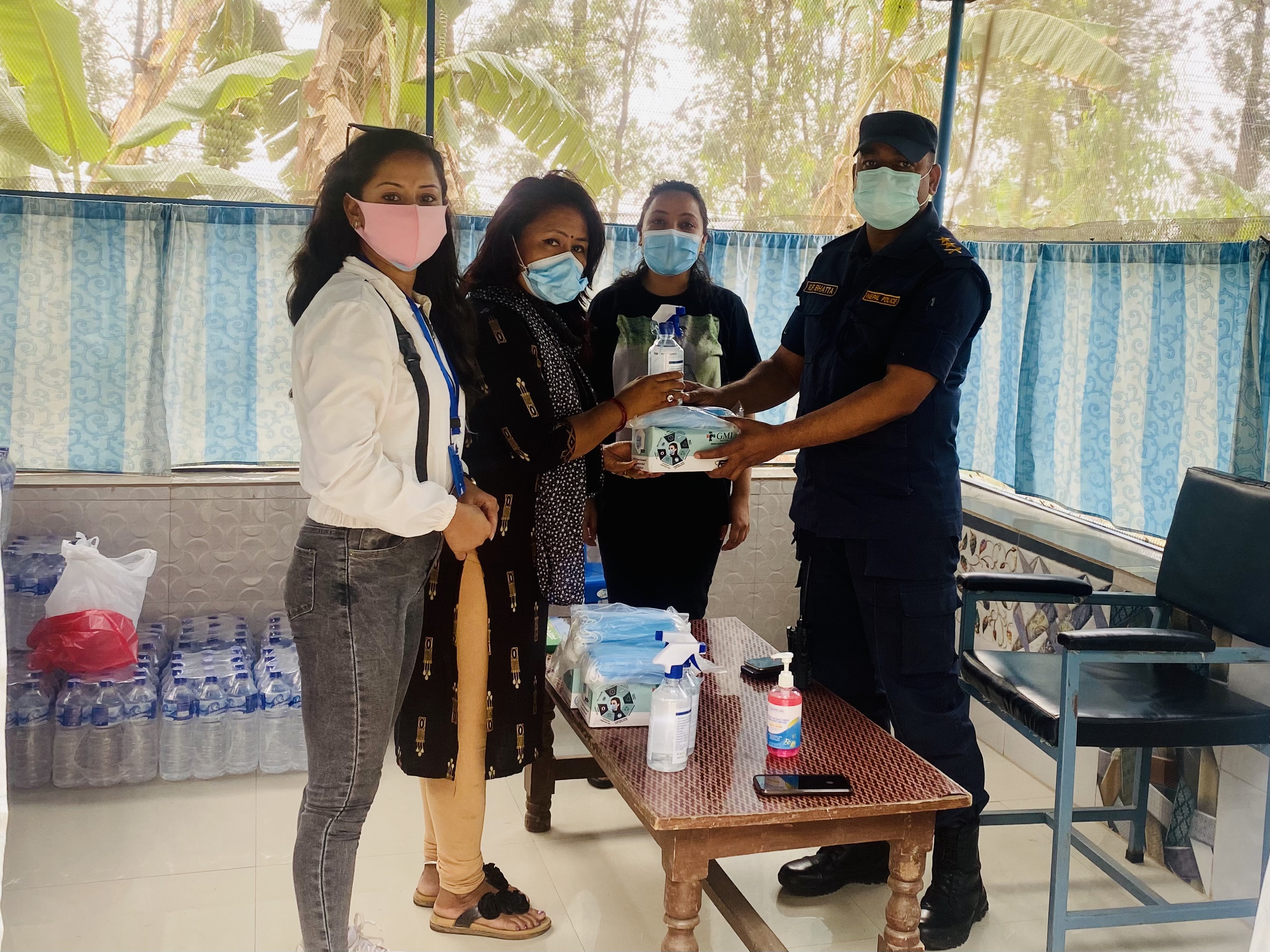 हिजाे मिति २०७८/०१/१९ गतेका दिन सुर्खेत महिला जेसीजले काेराेनाकाे दाेस्राे लहरका कारण जारी निषेधाज्ञा कार्यान्वयनमा चाेकचाेकमा खटिएका प्रहरीका सुरक्षाका लागि माक्स र सेनिटाइजर उपलब्ध गराएकाे छ ।